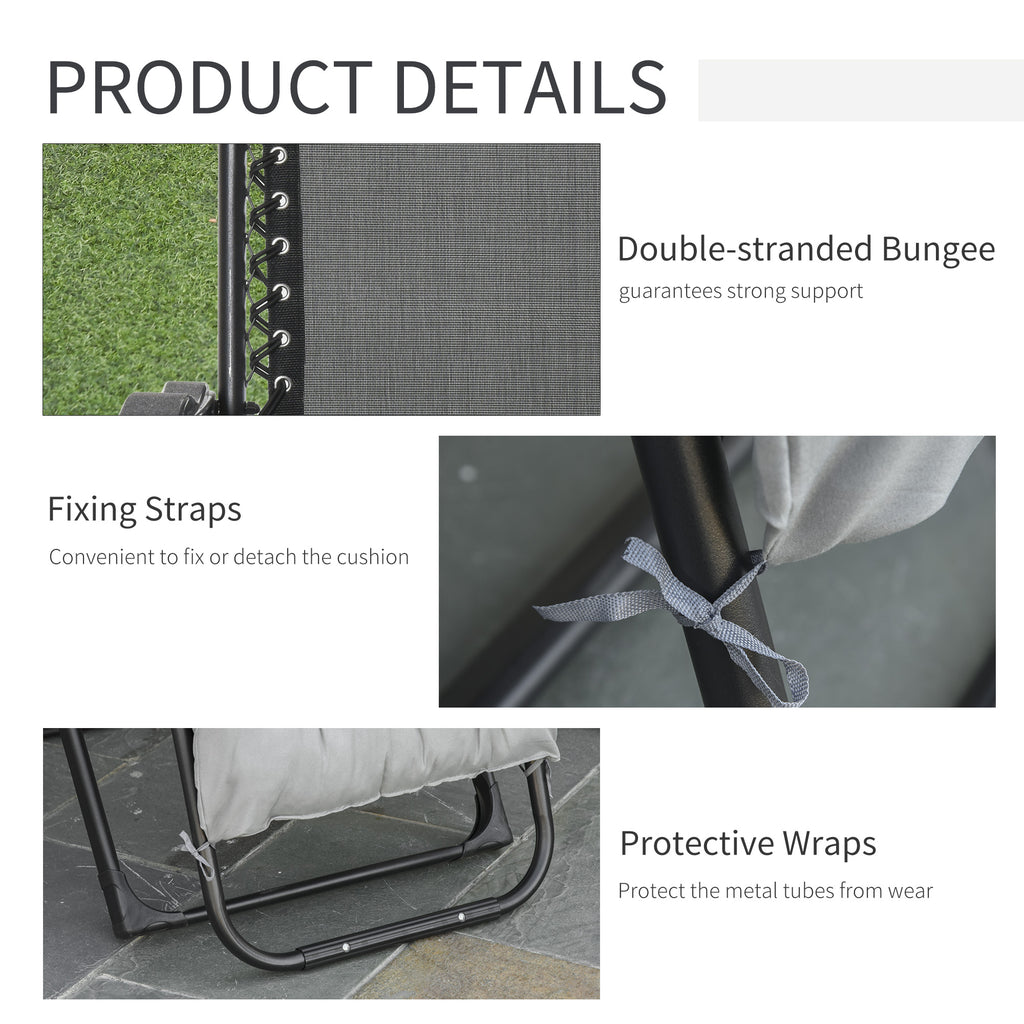 Klappbarer Gartenliegestuhl 90 x 65 x 110 cm mit verstellbarer Rückenlehne und hellgrauer Matratze