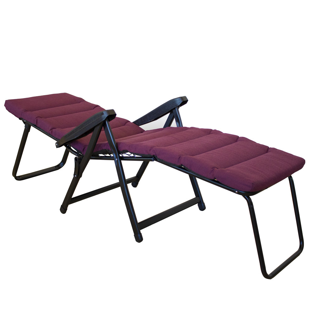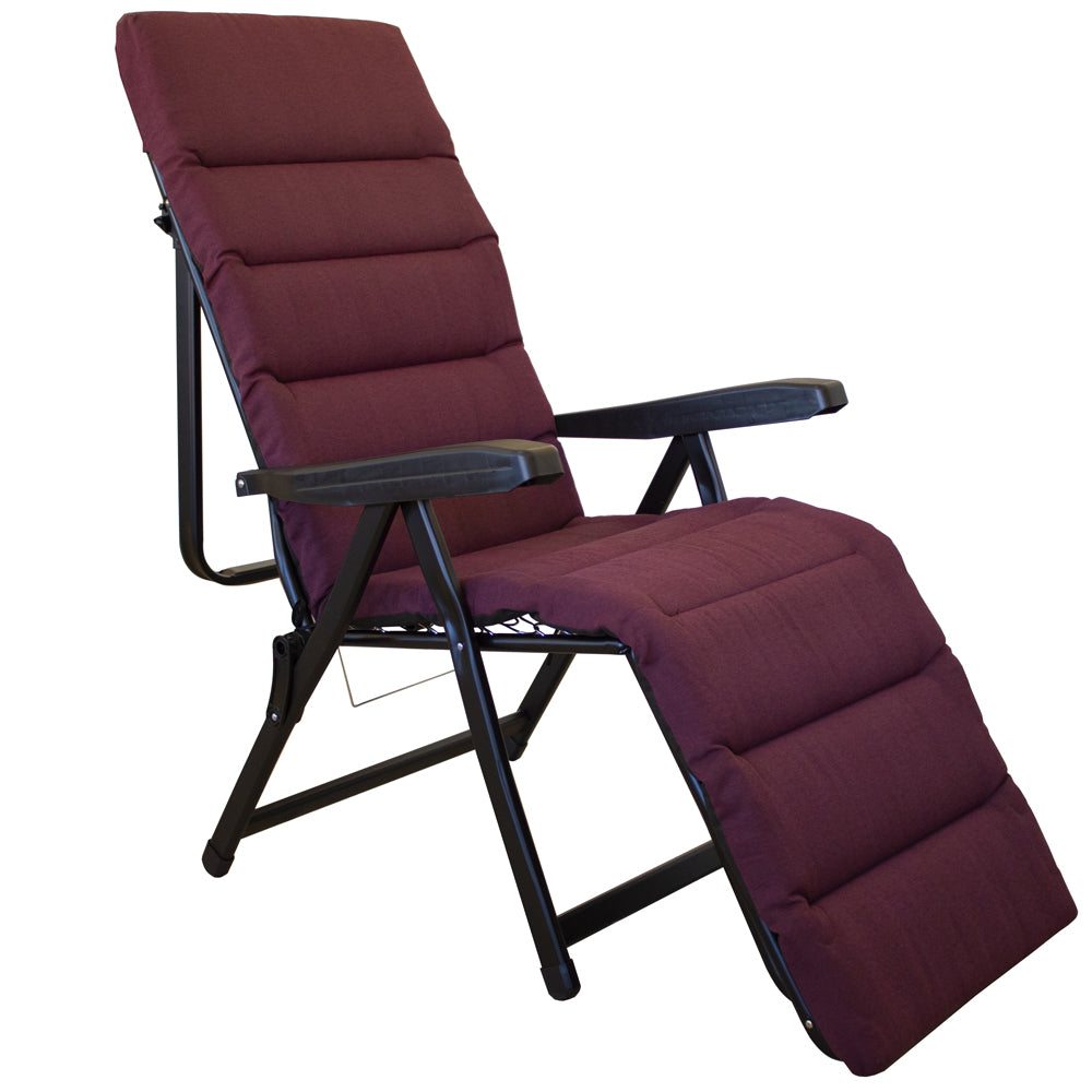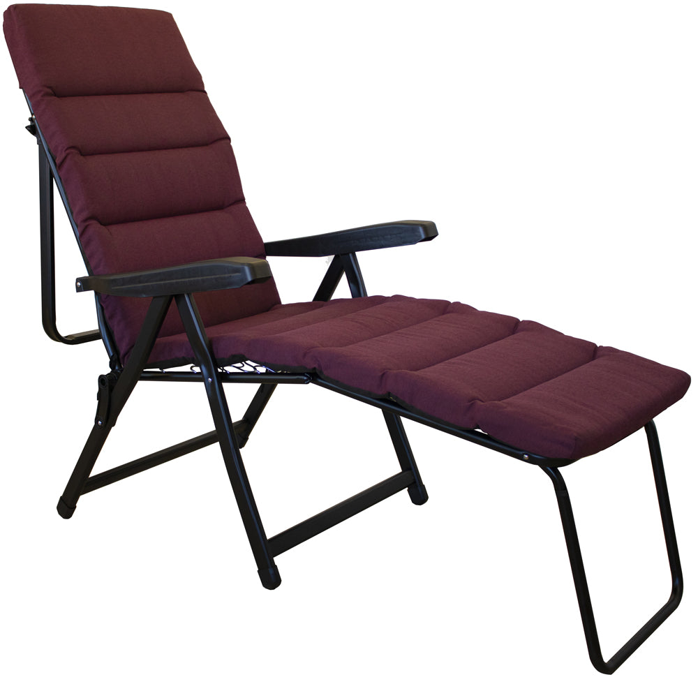 Klappbarer Garten-Liegestuhl, 6 Positionen verstellbar, mit burgunderrotem Kissen