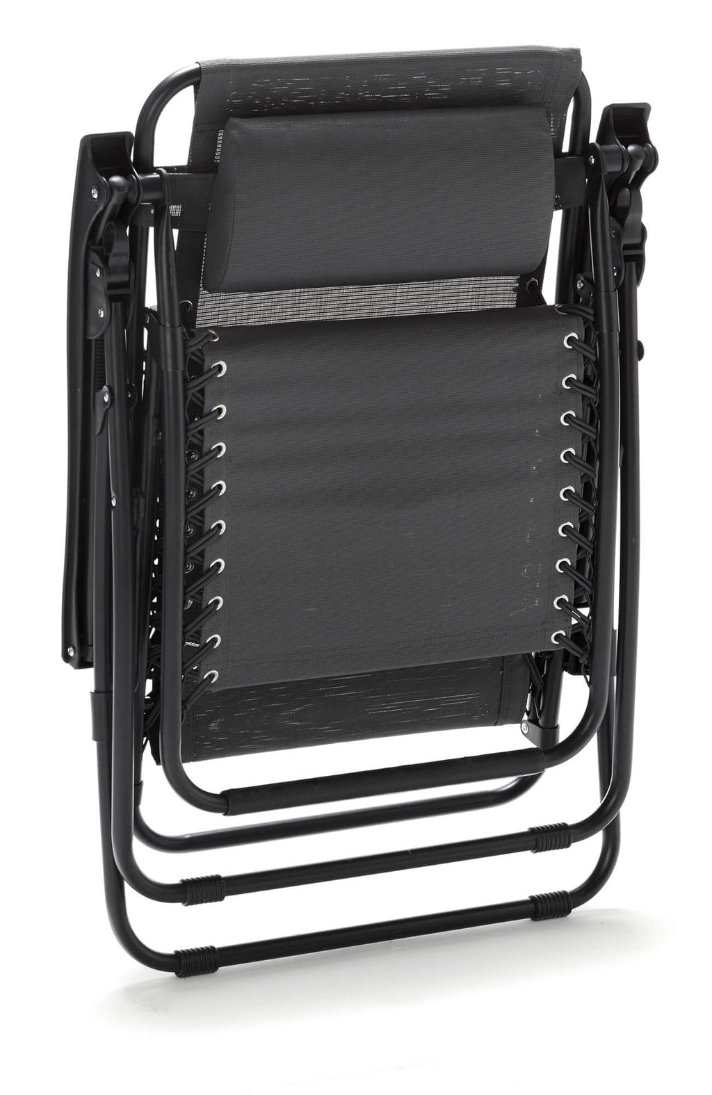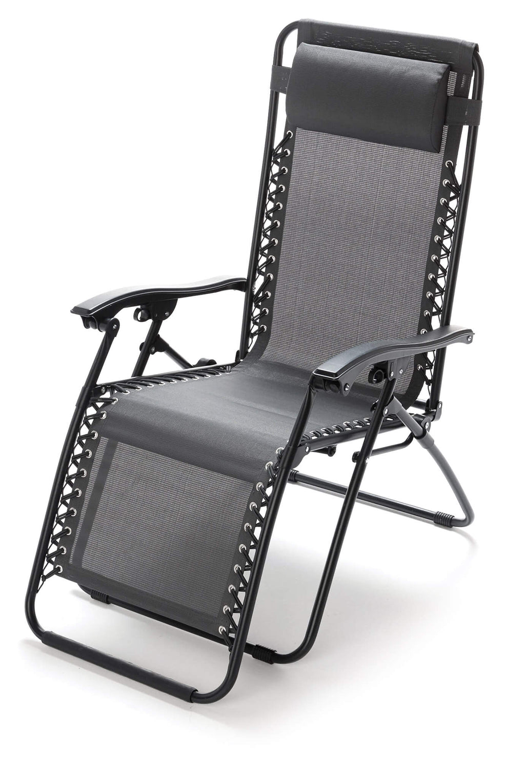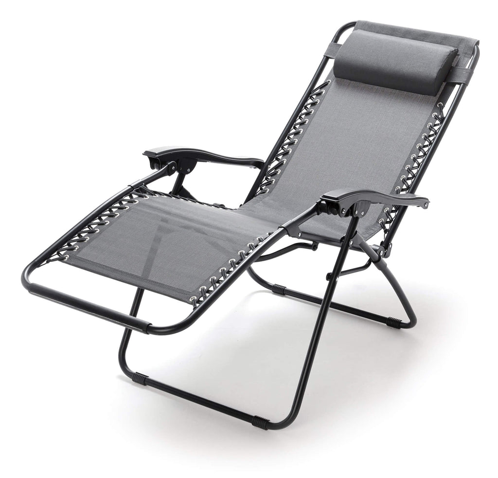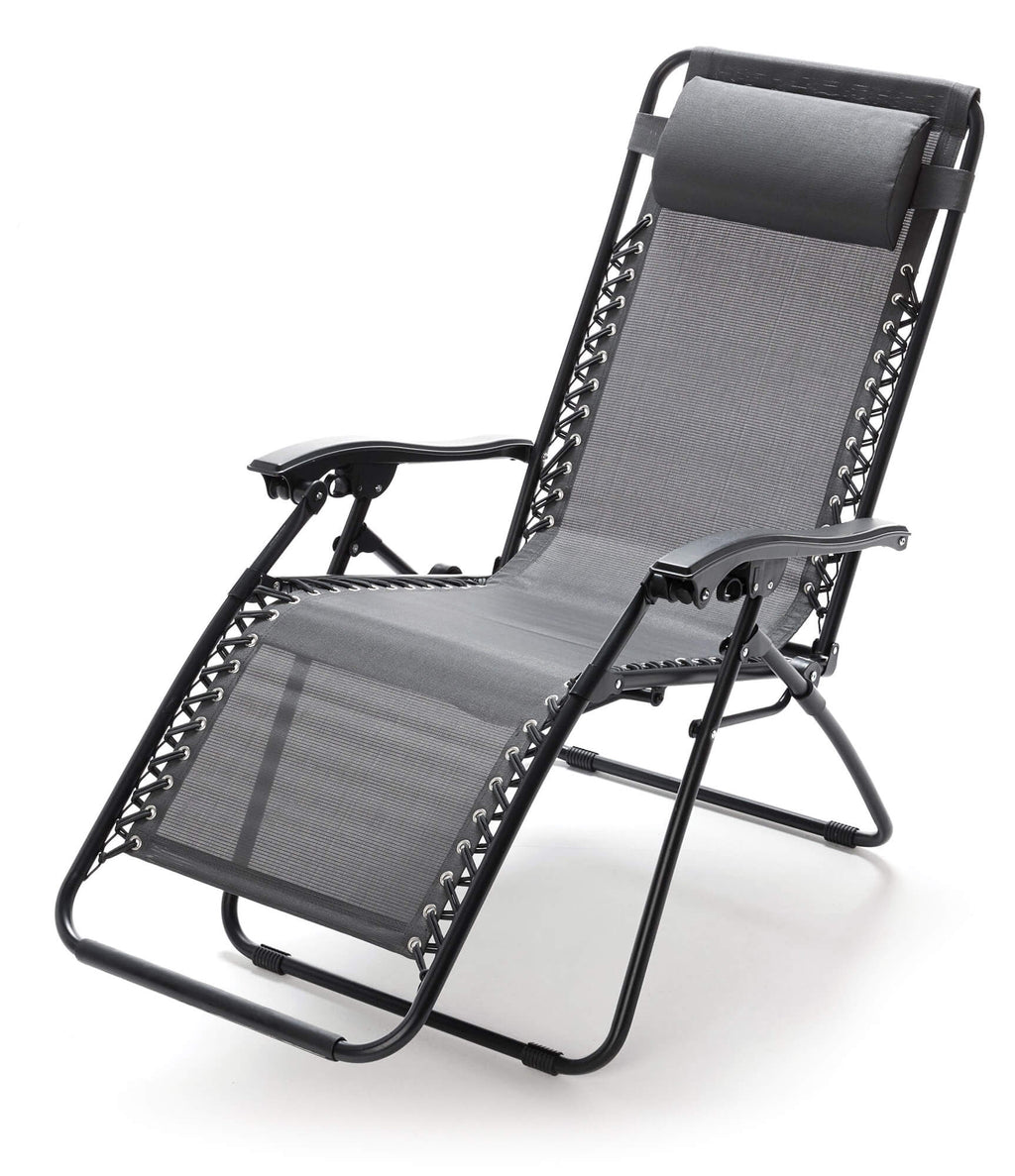 Zero Gravity Reclining Folding Liegestuhl aus Stahl und grauem Textilene