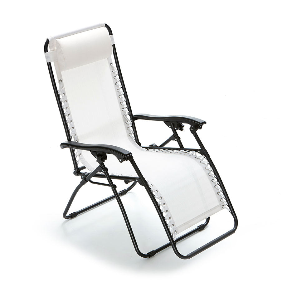 Camping-Liege- und Klappsessel Zero Gravity aus Eisen und Textilene mit Taddei Gran Relax-Kissen in Weiß