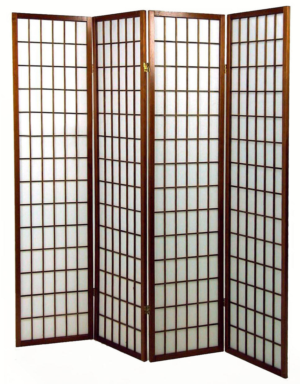 Separè Trennwand aus Reispapier 4 Türen Adami Nussbaum