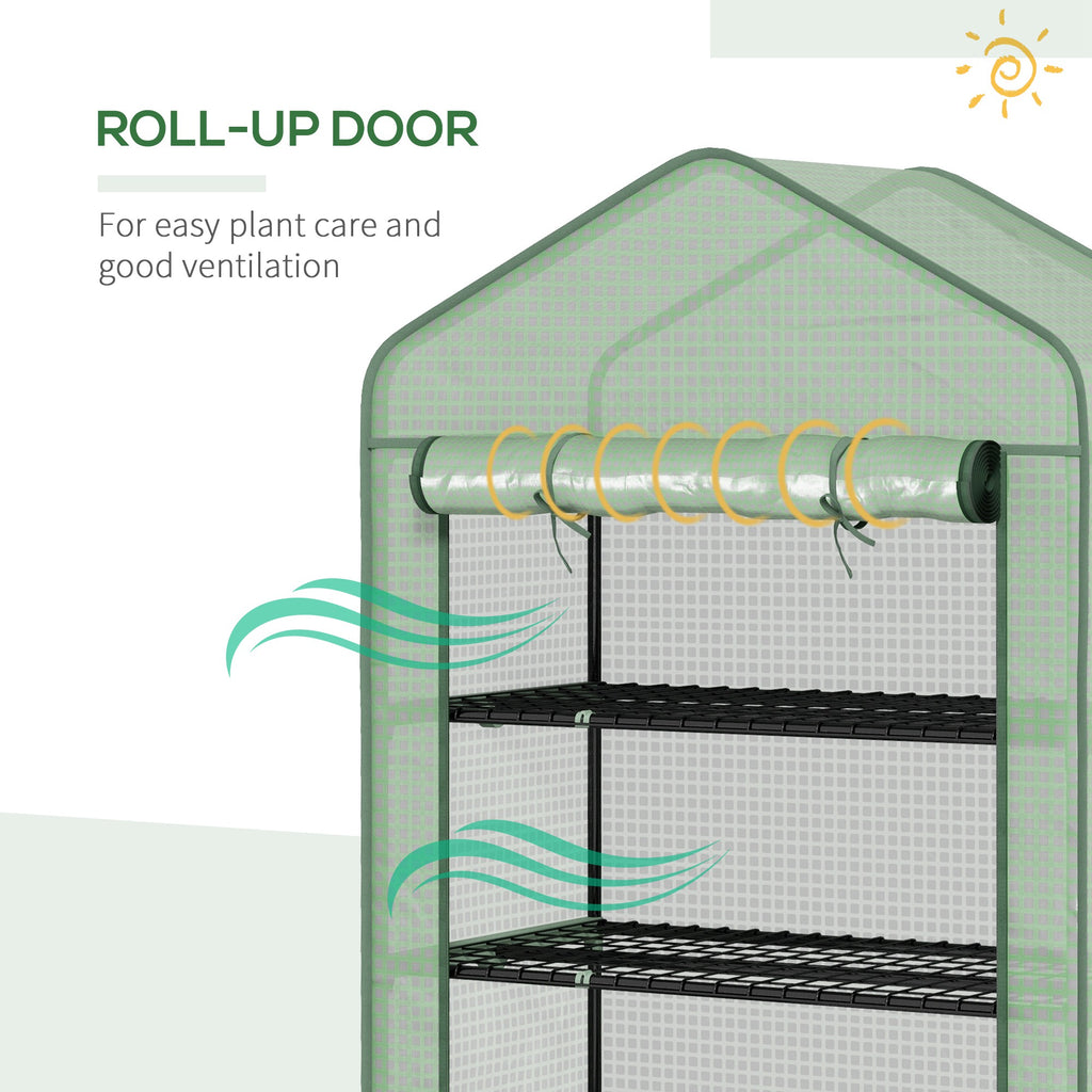 Serra a Casetta a 5 Livelli con Ingresso Avvolgibile 90x49x193 cm in Acciaio e Polietilene Verde