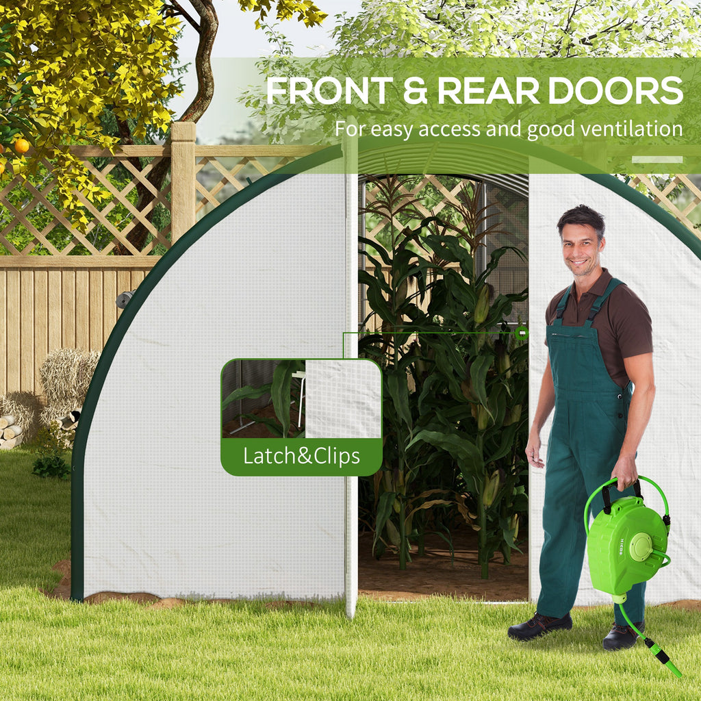 Serra a Tunnel 2 Ingressi 8 Finestre 6x3 m in PE Poliestere e Acciaio Zincato Bianco e Verde