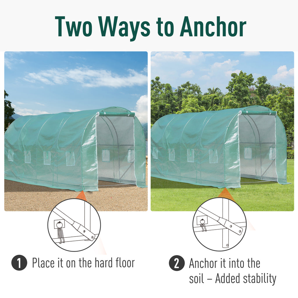 Tunnelgewächshaus Stahlkonstruktion mit 8 grünen Fenstern 500x200x210 cm