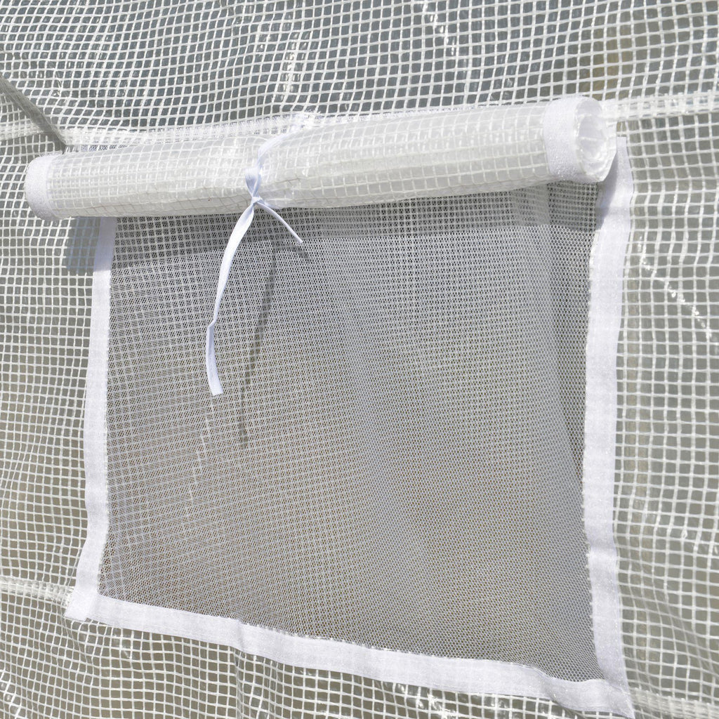 - AUFROLLTÜR UND FENSTER: Die aufrollbare Tür mit Reißverschluss ermöglicht es Ihnen, das Gewächshaus leicht zu öffnen, um Zugang zum Innenraum zu erhalten. Die 4 aufrollbaren perforierten Fenster sorgen für eine optimale Luftzirkulation und Sie können sie für einen schnellen Blick auf die Pflanzen nutzen, ohne hineinzugehen.