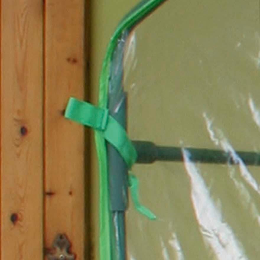 Das Clematisi-Gewächshaus hat eine Struktur aus Stahlrohren, die für eine lange Lebensdauer mit Epoxidpulvern lackiert sind, mit Kunststoffverbindungen, ohne Schrauben, für eine einfache und schnelle Montage. Abdeckung aus hochwertigem transparentem Kunststoffmaterial für eine lange Lebensdauer, beständig gegen UV-Strahlen. Frontöffnung mit Reißverschluss. Seile und Streben zur Befestigung am Boden.