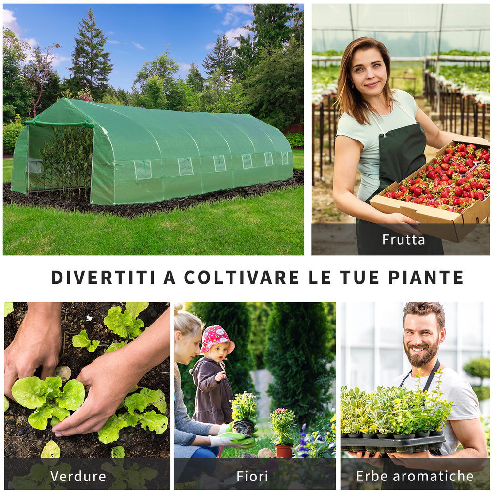 Tunnel-Gewächshaus 800 x 300 x 200 cm aus Stahl und grünem Polyethylen