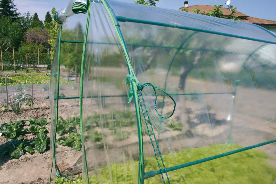 Das Premium-Tunnelgewächshaus hat einen Stahlrohrrahmen, der für eine lange Lebensdauer mit Epoxidpulvern lackiert ist, mit Kunststoffgelenken, ohne Schrauben, für eine schnelle und einfache Montage.