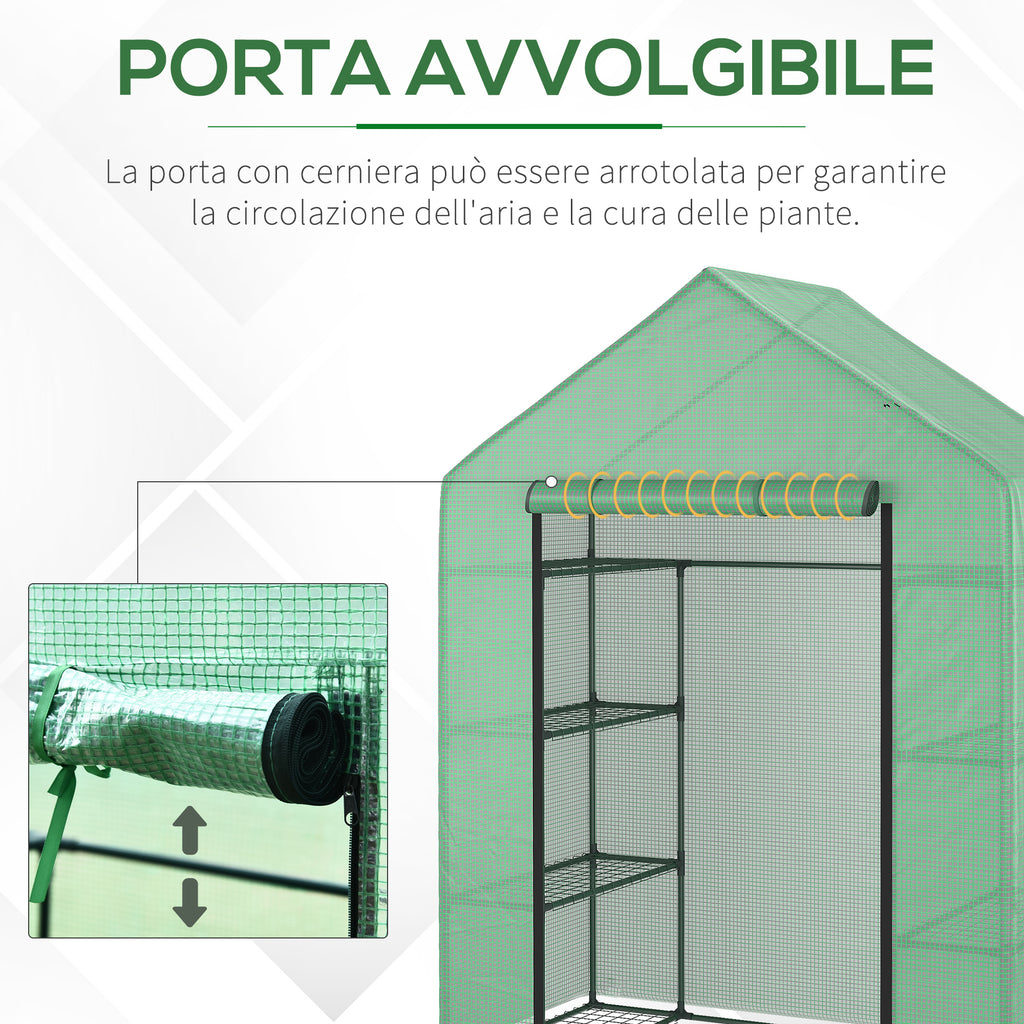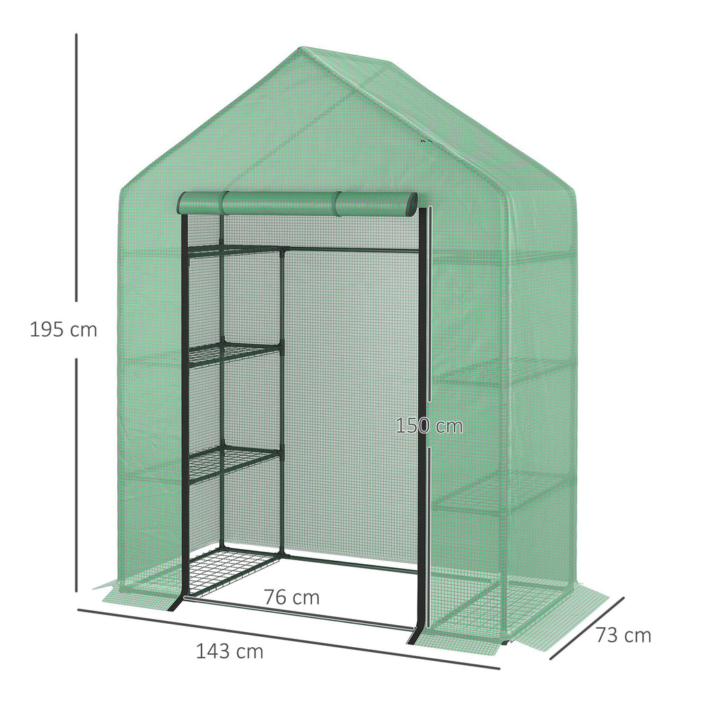 Gartengewächshaus mit Regalen und PE-Schrägdach 143x73x195 cm