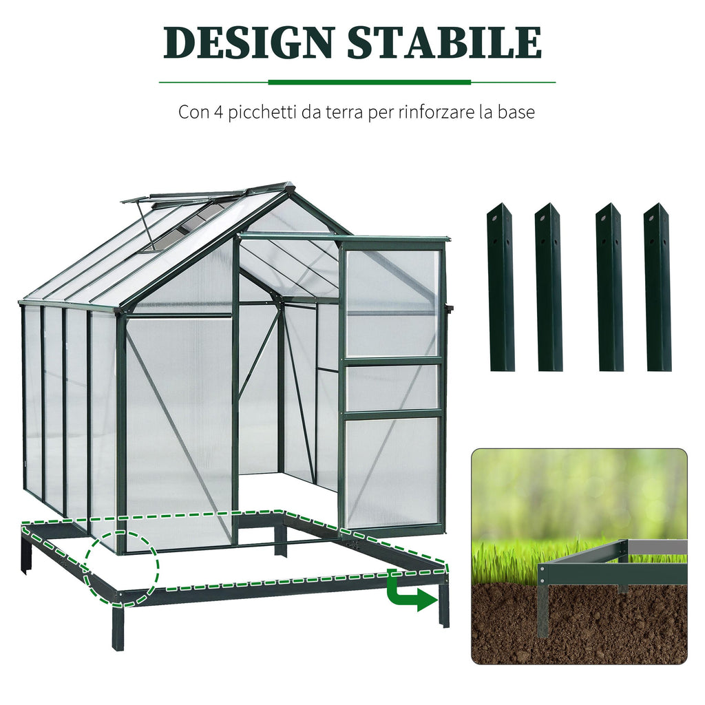 Gartengewächshaus für Pflanzen 190 x 252 x 201 cm aus grünem UV-beständigem Polycarbonat