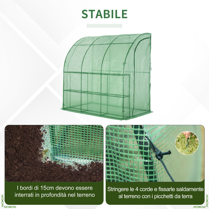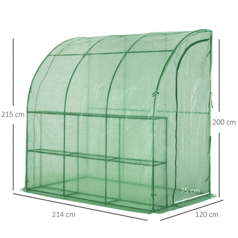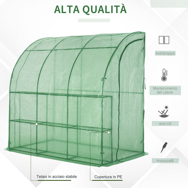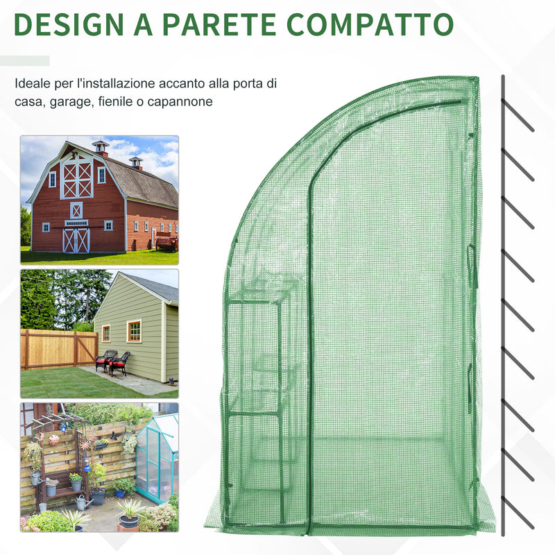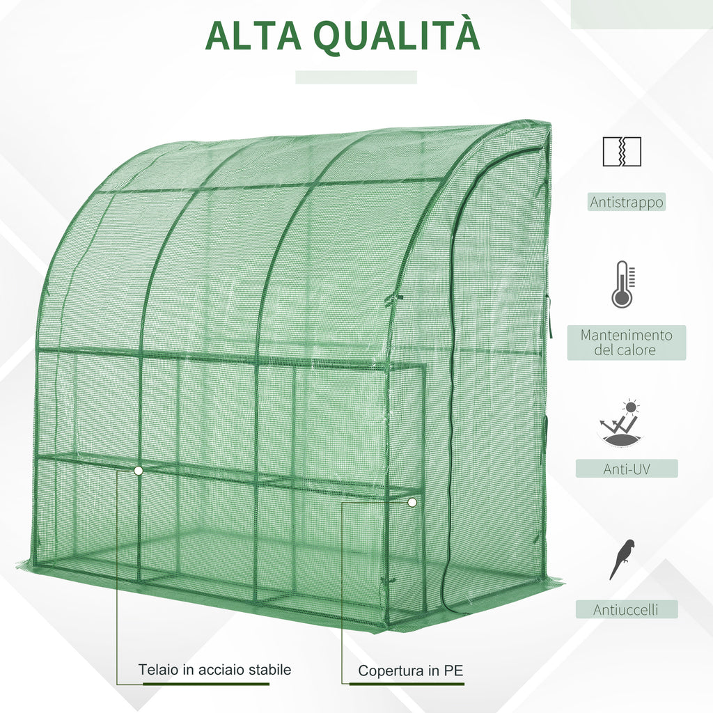 Wandgewächshaus 2 Regale 214x120x215 cm aus Stahl und grünem PE