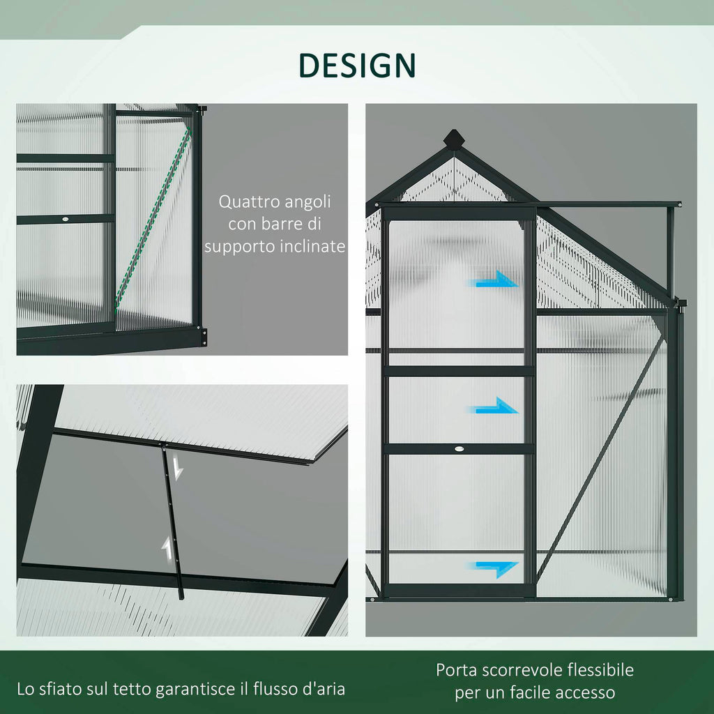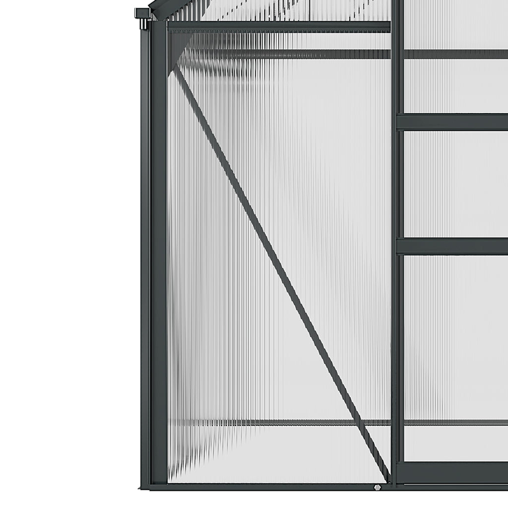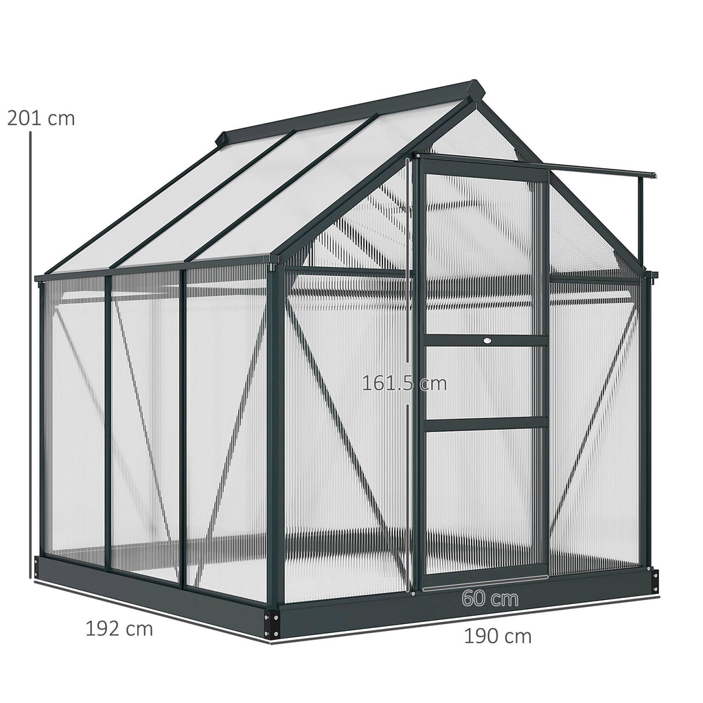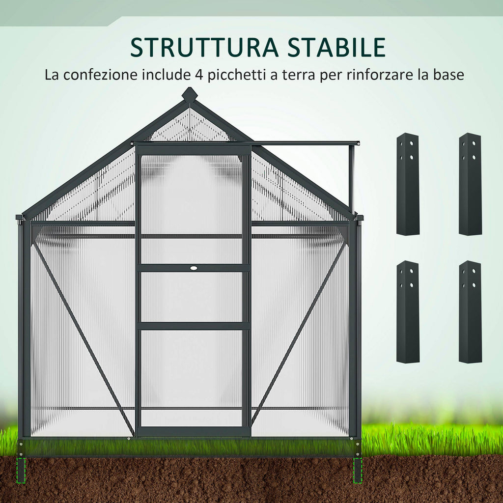 Serra in Policarbonato e Alluminio con Porta Scorrevole 1,9x1,9x2m Presa d'Aria e Grondaia Grigio