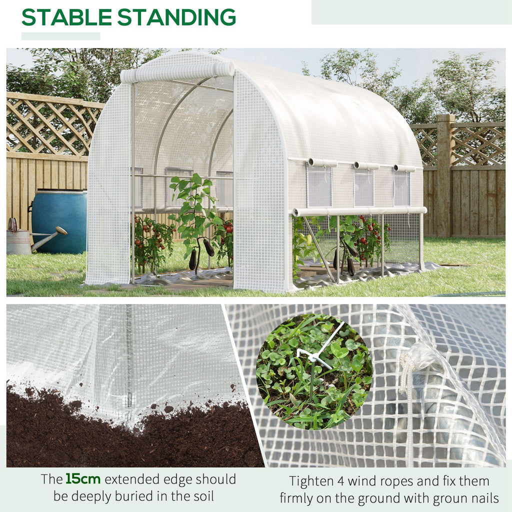 Dieses Gemüsegewächshaus ist perfekt für den Hausgarten! Das Tunnelgewächshaus bietet dank seiner Stahlkonstruktion und der PE-Abdeckung allen Schutz, den Ihre Pflanzen benötigen. Interne Netzfenster bieten eine hervorragende Belüftung, während das praktische Rolltürdesign einen einfachen Zugang zum Inneren ermöglicht. Das Pflanzengewächshaus ist die ideale Lösung, um Ihre Pflanzen das ganze Jahr über in Form zu halten.