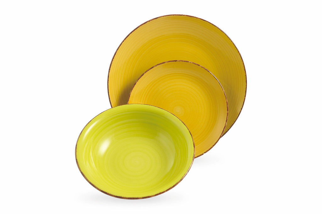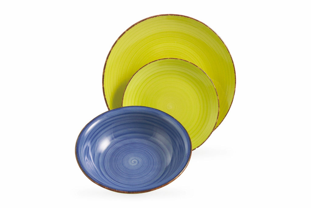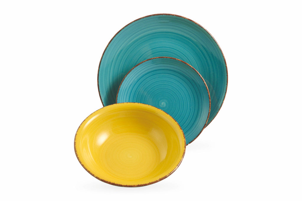 Handbemaltes Steingut: Stärke und Einzigartigkeit Teller aus Steingut fallen sofort durch die starke Persönlichkeit auf, die durch die Robustheit des Materials zum Vorschein kommt. Sie sind dick und widerstandsfähig, halten die Wärme heißer Gerichte und erleichtern das Servieren. Jeder Teller ist ein Unikat: handbemalt, behalten sie originale und unnachahmliche Details bei, die sofort in den Pinselstrichen, Dekorationen, Oberflächen und im Endeffekt sichtbar sind, der mit dem Gerät zurückgegeben wird. Bringen wir Farbe in den Tisch. Der Suppenteller aus dem Service Baita färbt seine Unterseite in den gleichen Farben wie der flache Teller und der Obstteller. Das Ergebnis? Ein reichhaltigerer, intensiverer Tisch mit einer doppelten Seele, die es zu entdecken gilt.