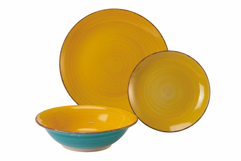 Handbemaltes Steingut: Stärke und Einzigartigkeit Teller aus Steingut fallen sofort durch die starke Persönlichkeit auf, die durch die Robustheit des Materials zum Vorschein kommt. Sie sind dick und widerstandsfähig, halten die Wärme heißer Gerichte und erleichtern das Servieren. Jeder Teller ist ein Unikat: handbemalt, behalten sie originale und unnachahmliche Details bei, die sofort in den Pinselstrichen, Dekorationen, Oberflächen und im Endeffekt sichtbar sind, der mit dem Gerät zurückgegeben wird. Bringen wir Farbe in den Tisch. Der Suppenteller aus dem Service Baita färbt seine Unterseite in den gleichen Farben wie der flache Teller und der Obstteller. Das Ergebnis? Ein reichhaltigerer, intensiverer Tisch mit einer doppelten Seele, die es zu entdecken gilt.