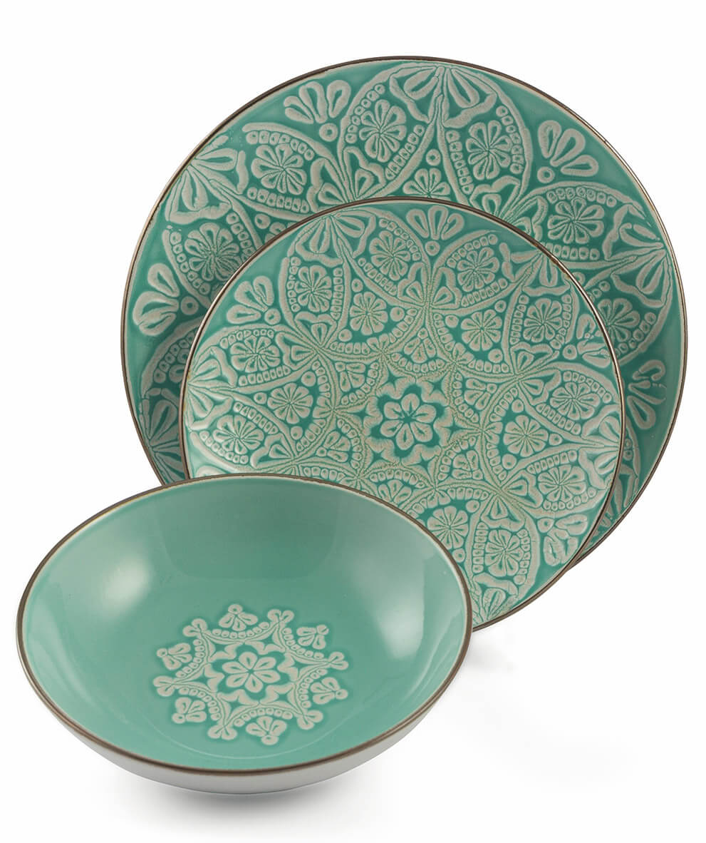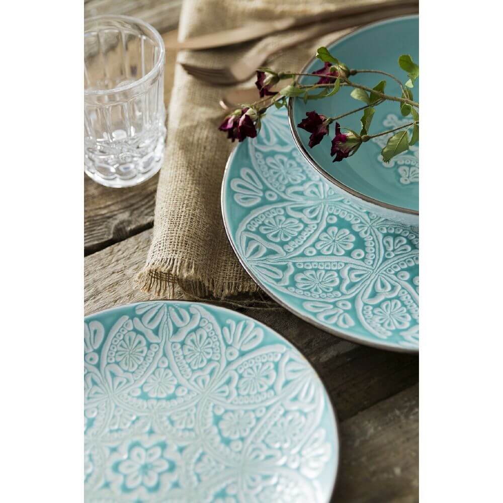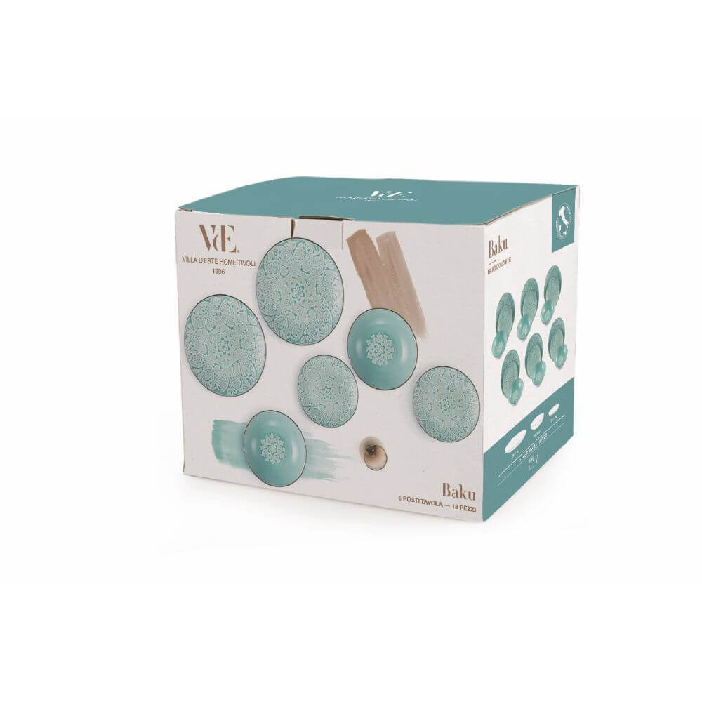 18-teiliges Speiseservice in Hard Dolomite Villa dEste Baku Türkis