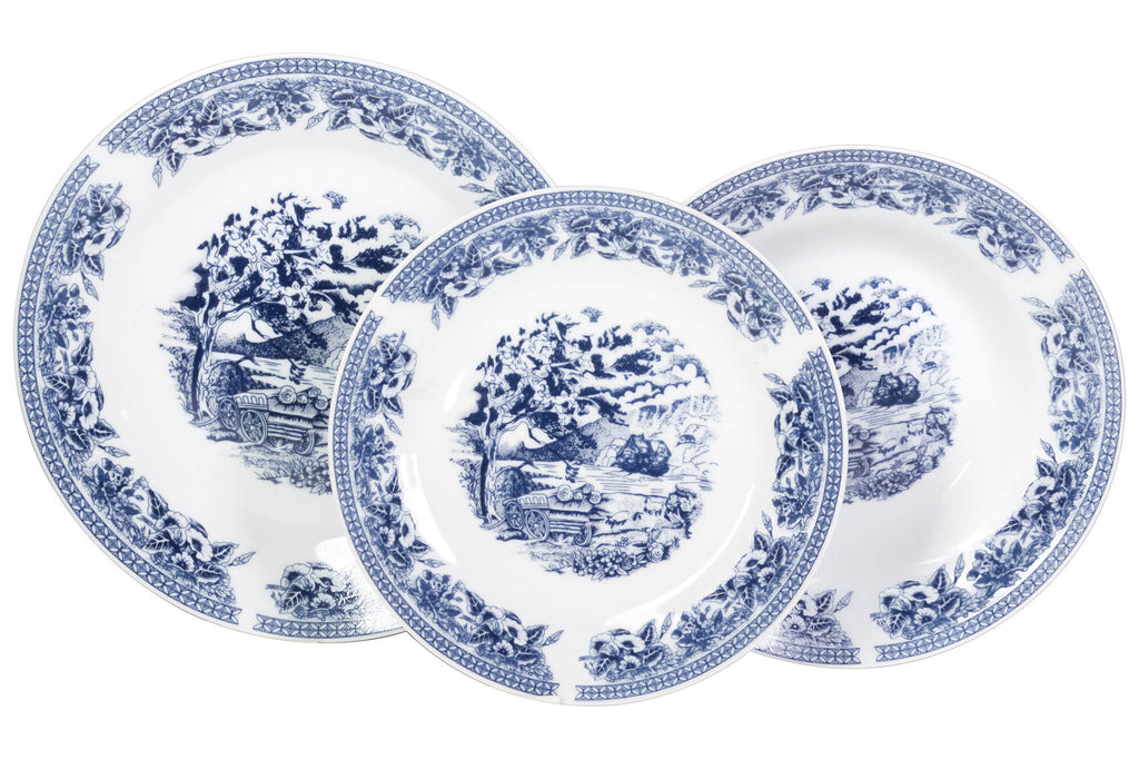 18-teiliges Tafelservice aus weiß/blauem Porzellan mit Dekorationen aus der Old England Collection
