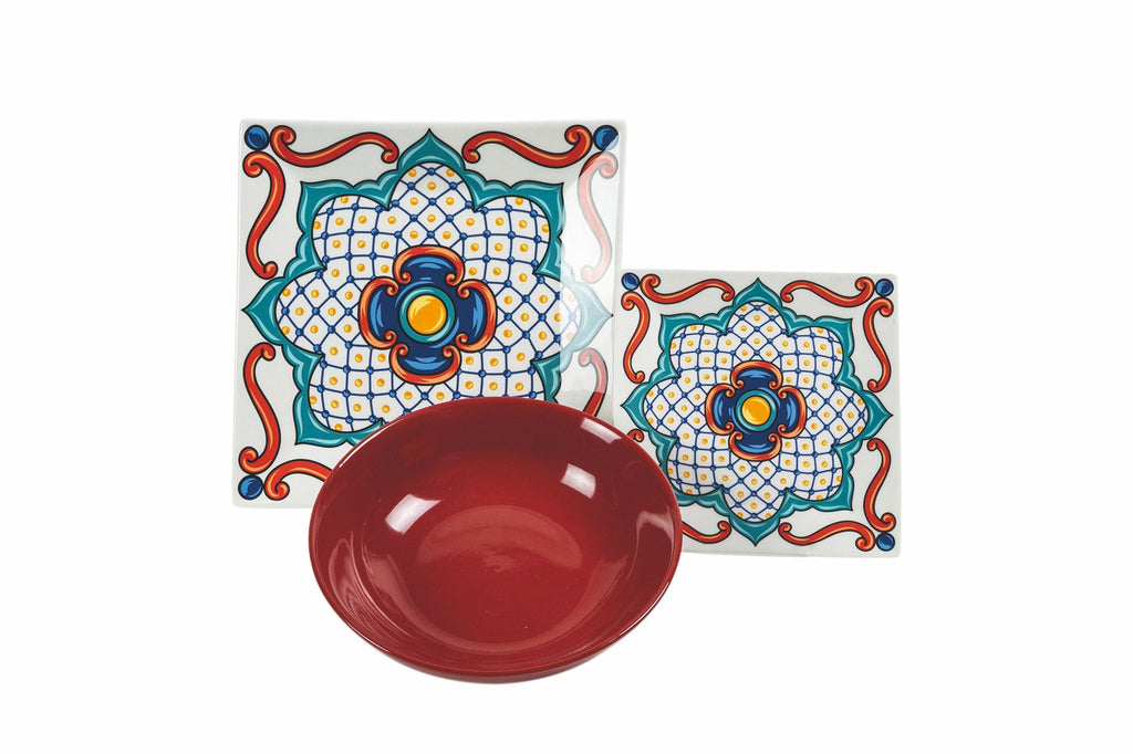 Tafelservice 18 Teile aus Porzellan und mehrfarbigem Steingut Villa d'Este Home Tivoli Barrio