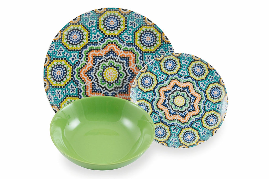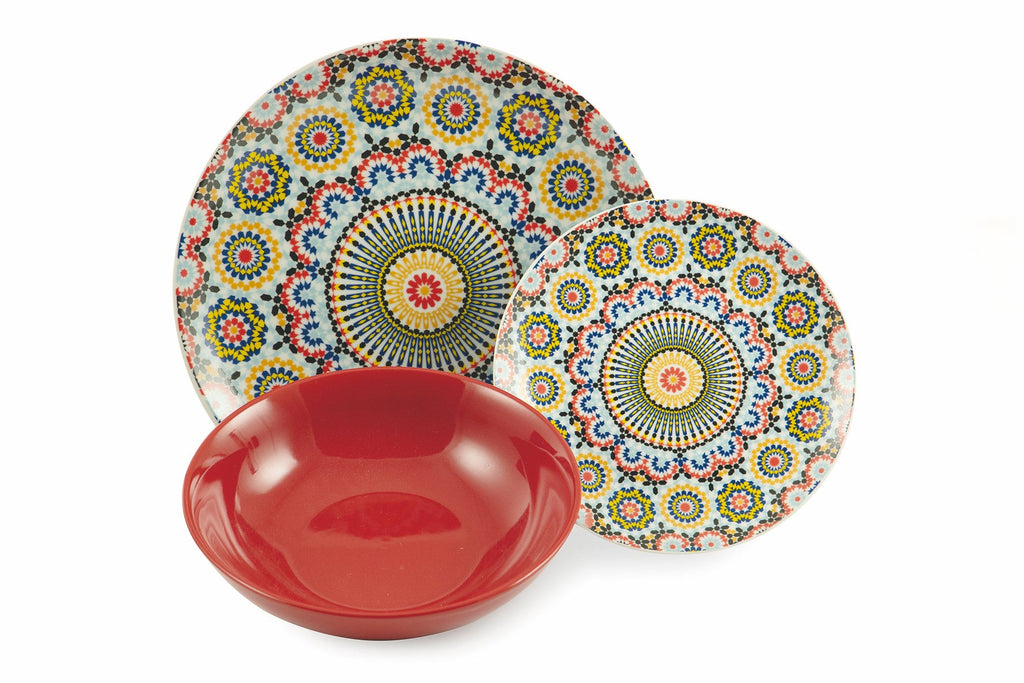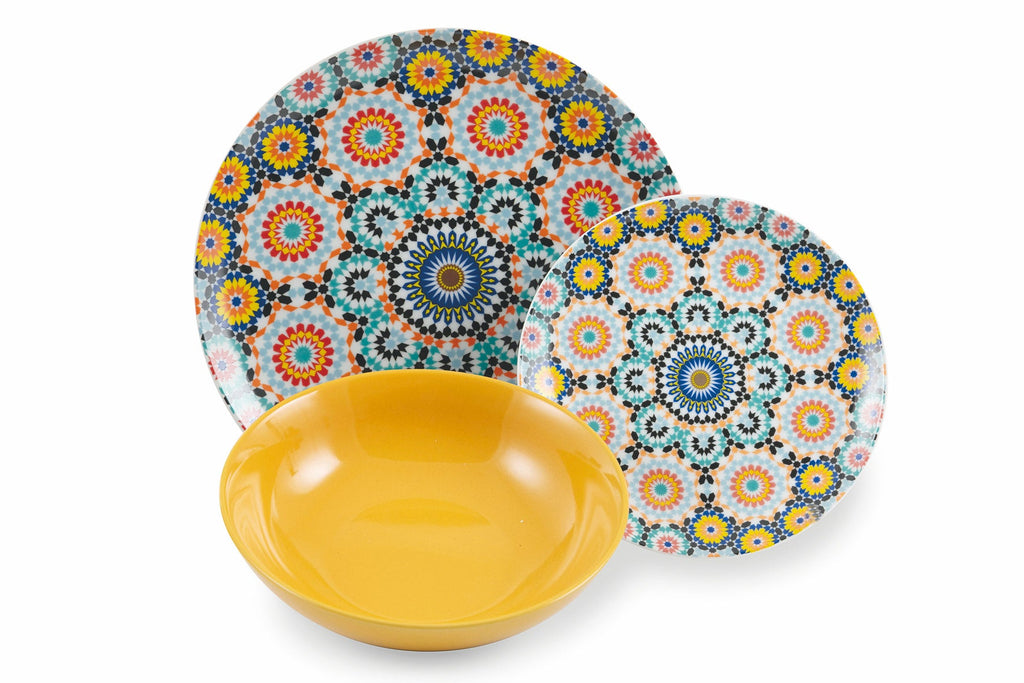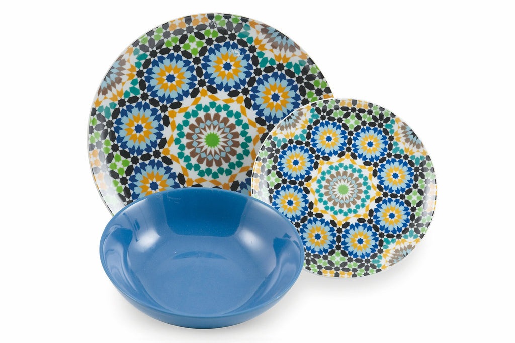 Tafelservice 18 Teile aus Porzellan und mehrfarbigem Steingut Villa d'Este Home Tivoli Marrakesch