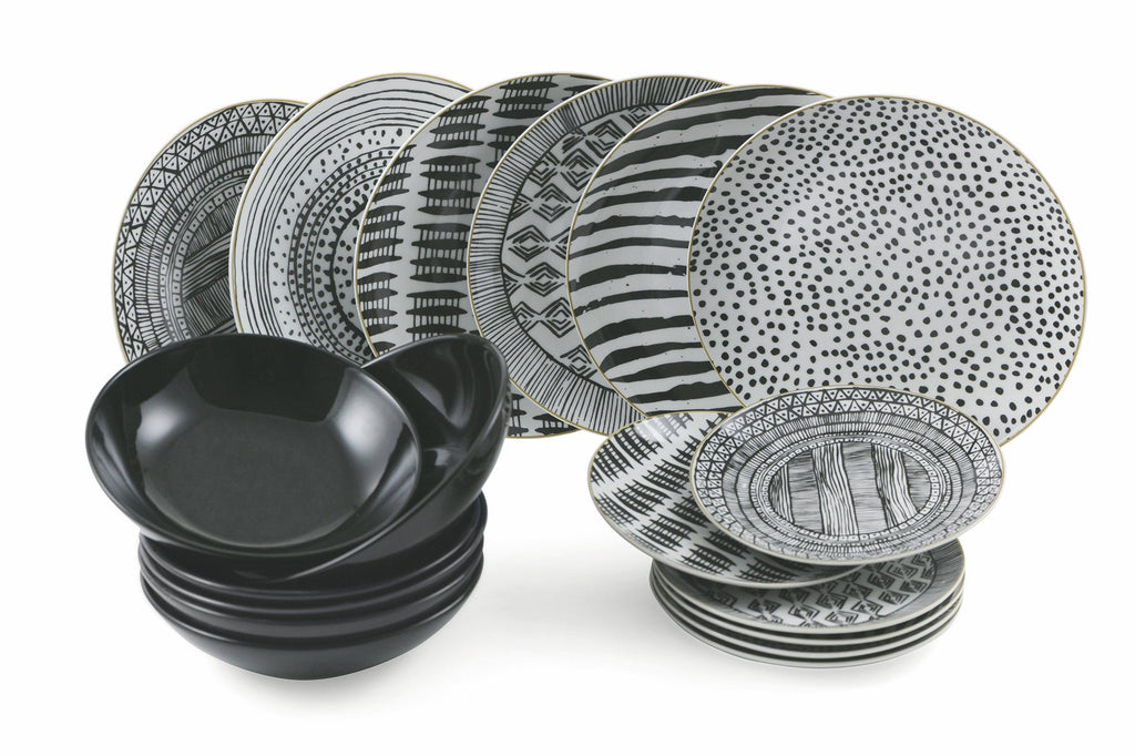 18-teiliges Tafelservice aus Porzellan und mehrfarbigem Steinzeug Villa d'Este Home Tivoli Masai Black