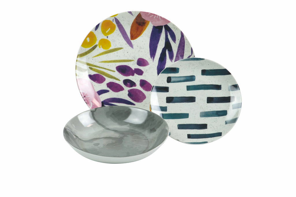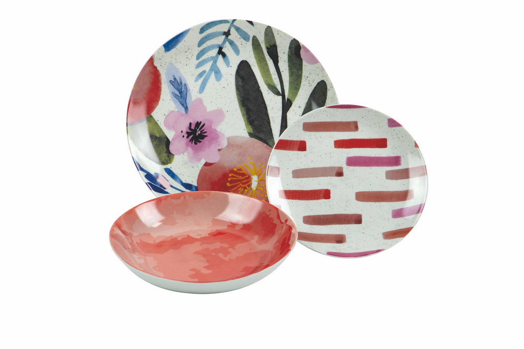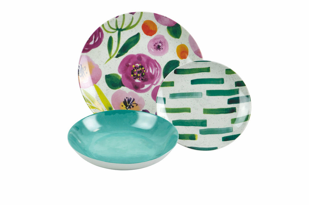 Tafelservice 18 Teile aus Porzellan und mehrfarbigem Steinzeug Villa d'Este Home Tivoli New Aquarell