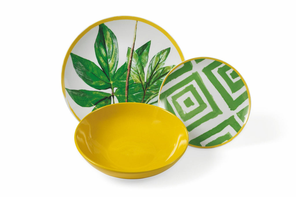 Tafelservice 18 Teile aus Porzellan und mehrfarbigem Steinzeug Villa d'Este Home Tivoli 1996 Oriental Botanique