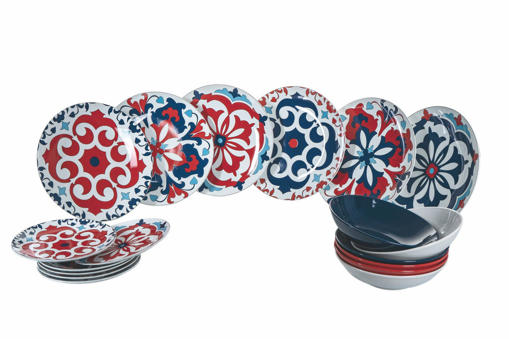 Tafelservice 18 Teile aus Porzellan und mehrfarbigem Steinzeug Villa d'Este Home Tivoli Santiago