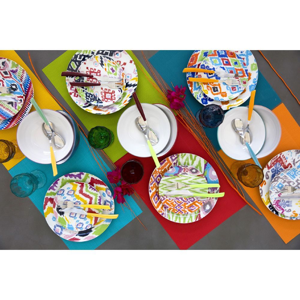- Das glasierte Steinzeug der sechs Suppenteller hingegen bringt Funktionalität auf den Tisch: Dick und widerstandsfähig hält es die Hitze heißer erster Gänge wie Suppen und Suppen und erleichtert deren Servieren. Die glasierte Oberfläche verstärkt die Farben des Tisches.