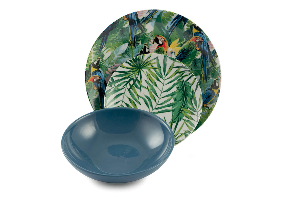 Villa d'Este Parrot Jungle Tafelservice aus Porzellan und Steinzeug 18-teilig