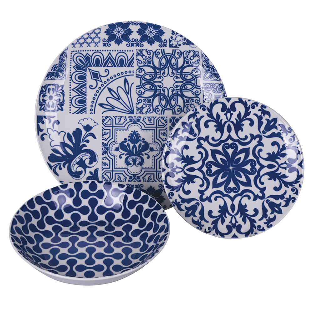 - Das Service besteht aus 6 flachen Tellern, 6 Suppentellern, 6 Obsttellern