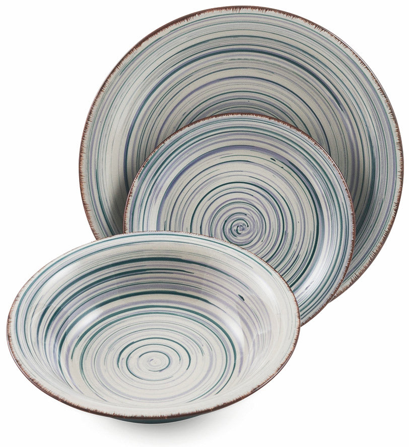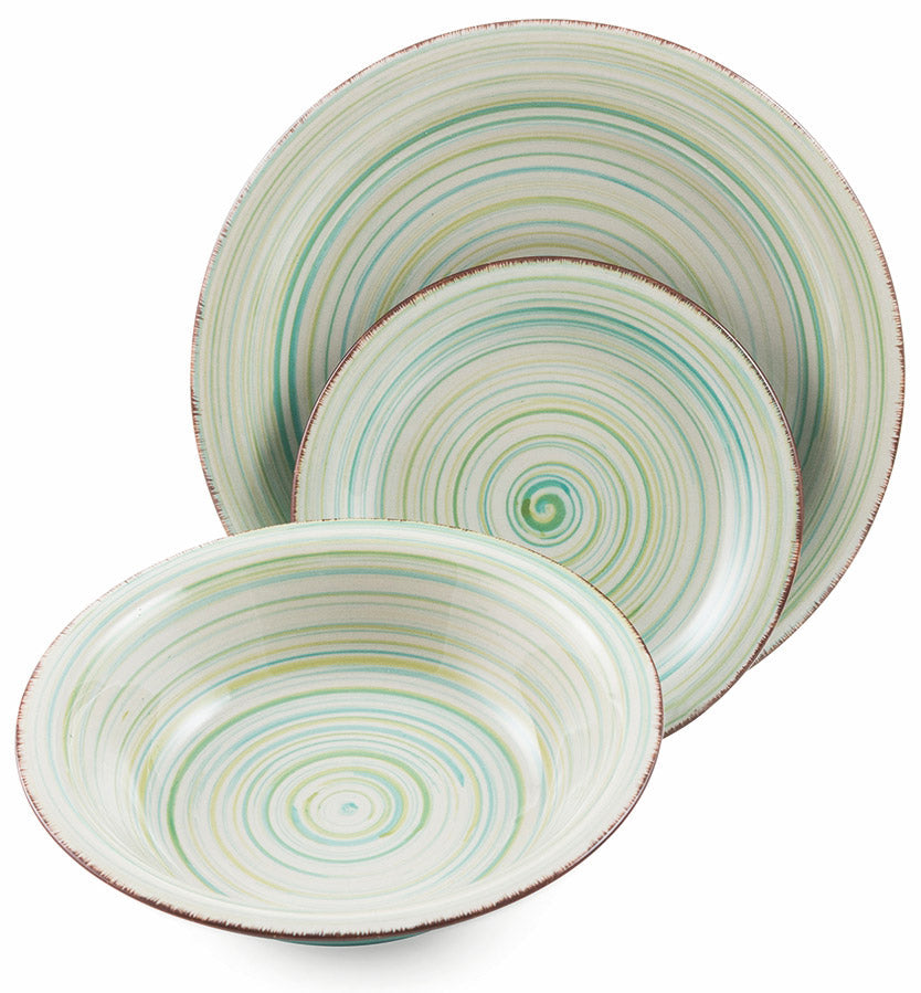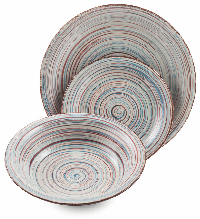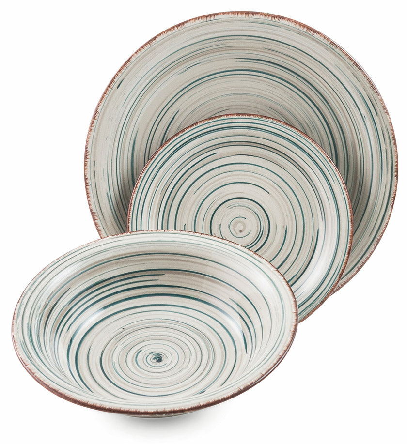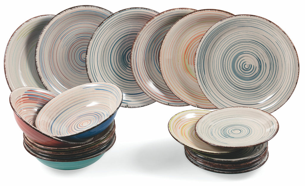 18-teiliges Tafelservice aus mehrfarbigem Soriani-Sandsteinzeug