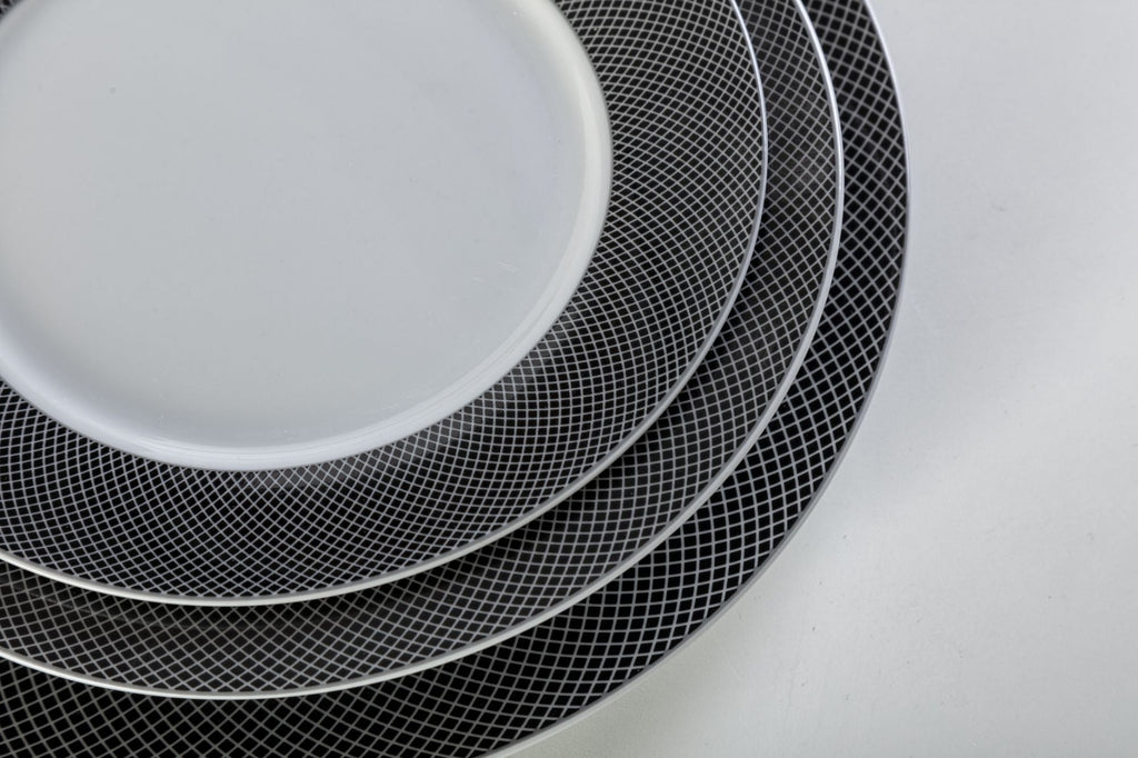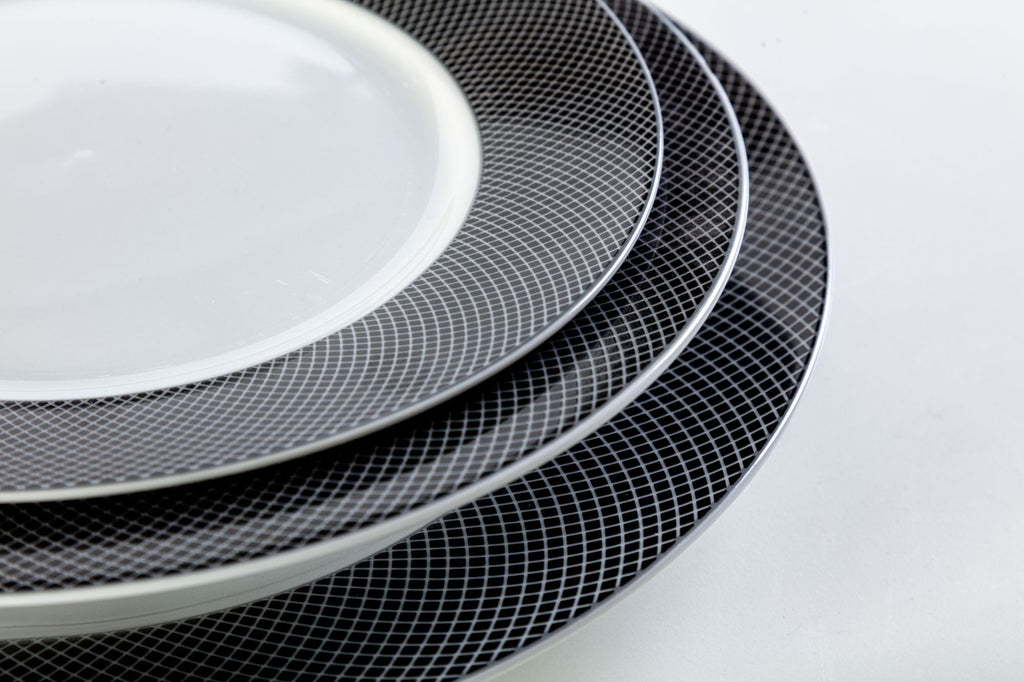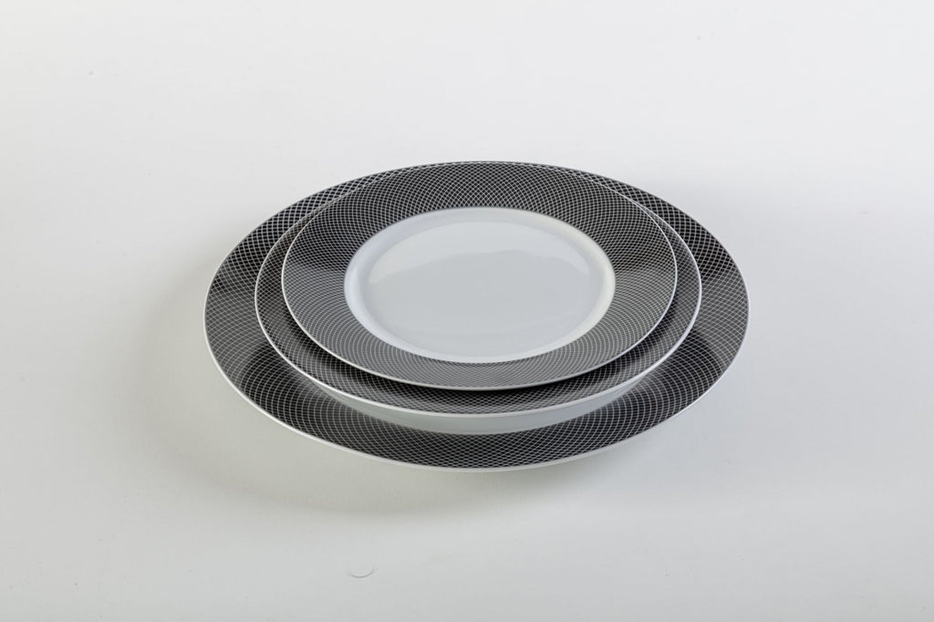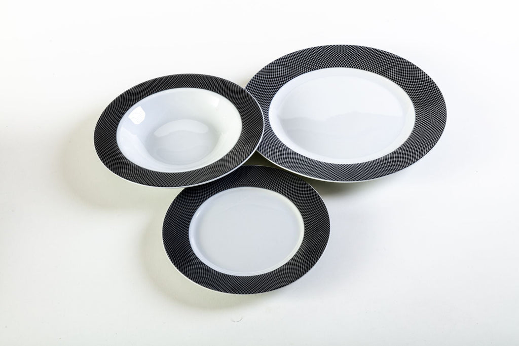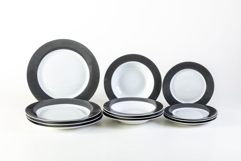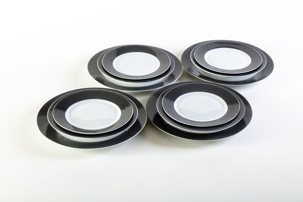 Servizio Piatti da Tavola 12 Pezzi in Porcellana Bianca Bordo Nero
