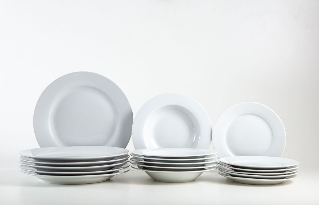 Servizio Piatti da Tavola 18 Pezzi in Porcellana Bianca