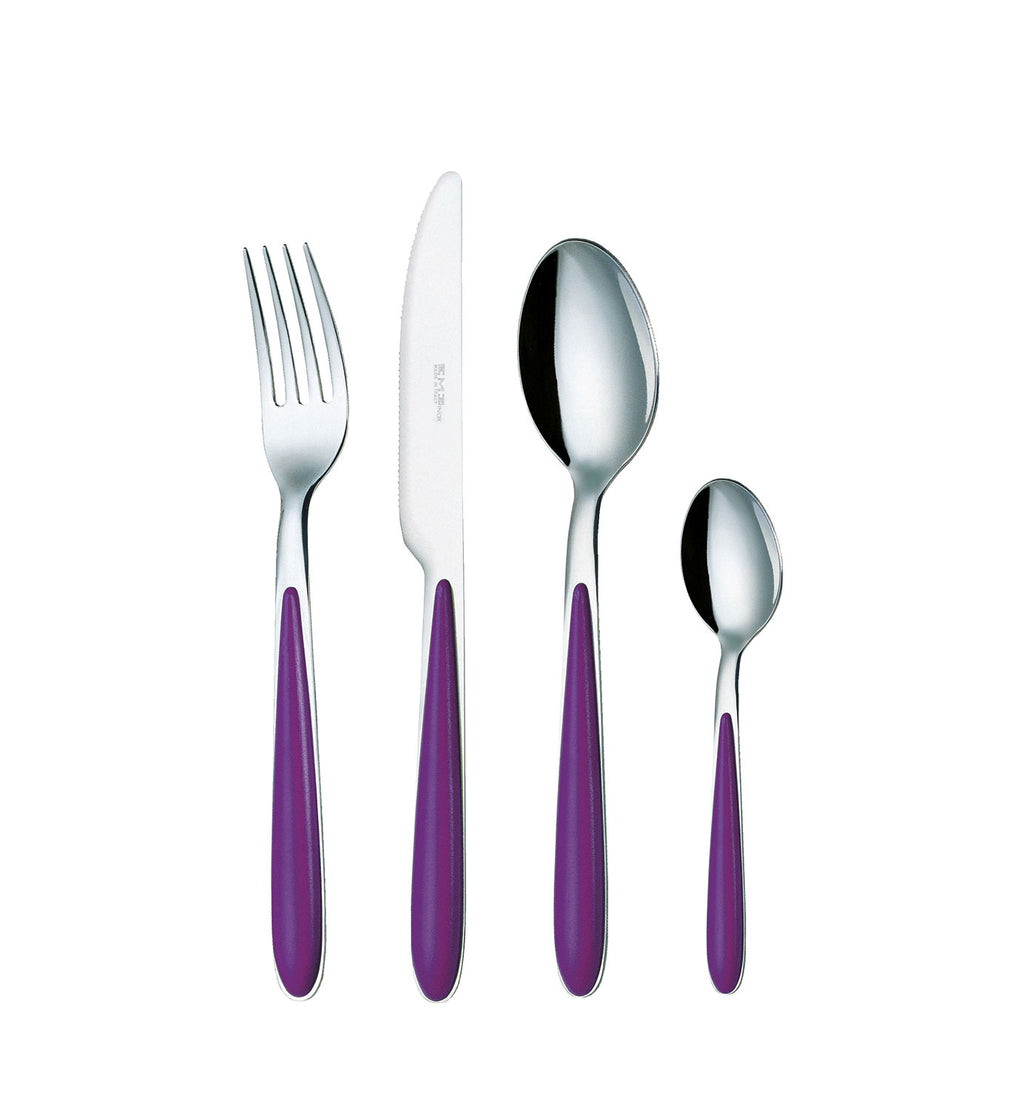 Caribe è una collezione di posate disponibile in una gamma di 4 articoli e in una gamma di 15 colori. Lavabile in lavastoviglie.