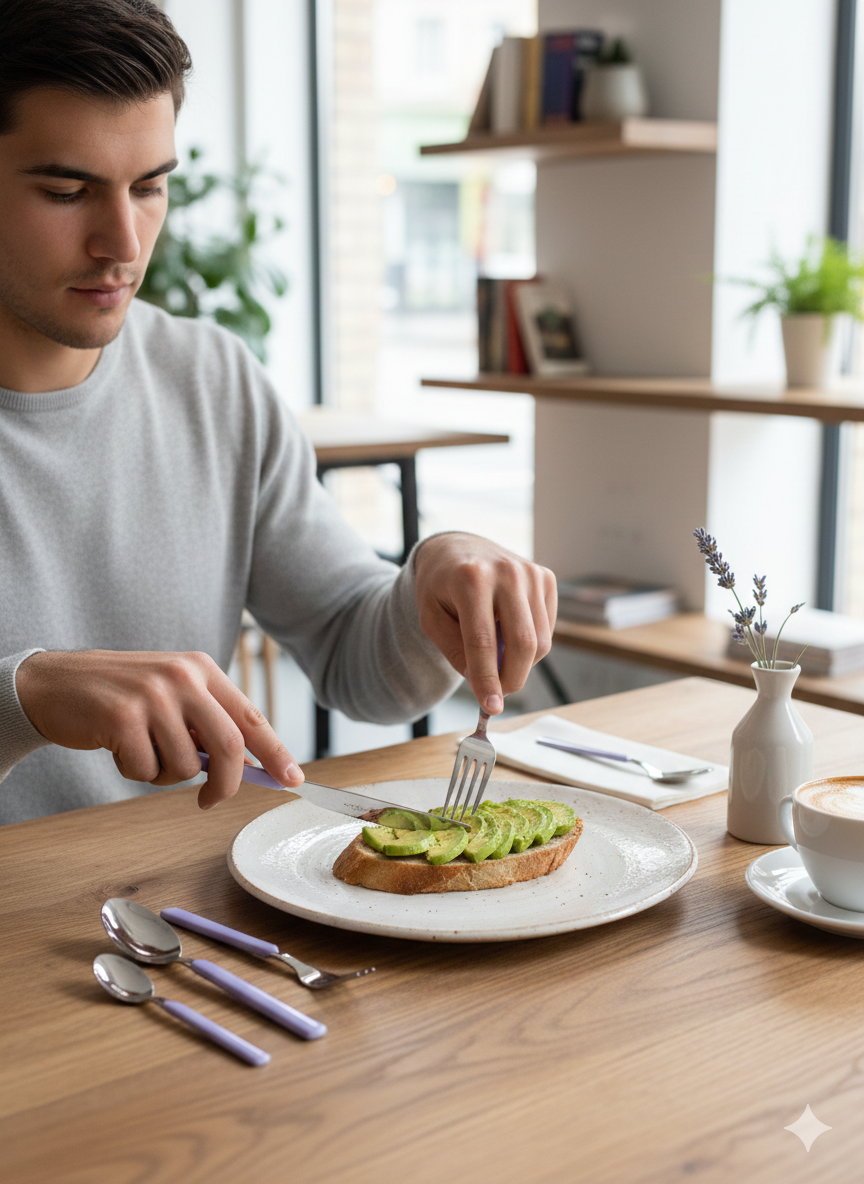 Fast è una posata in acciaio sul cui manico vengono applicate le 2 guancette colorate che fungono da impugnatura. È una collezione di posate dal sapore fresco fruibile nel quotidiano. Le linee e i colori moderni si adattano alle tavole più giovanili e contemporanee.