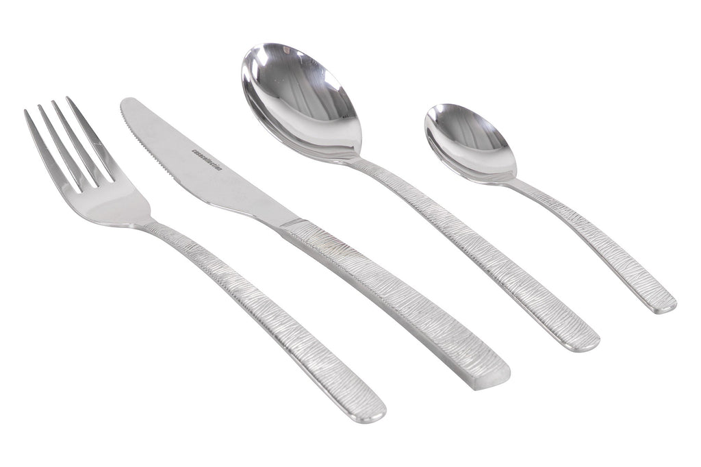 - Das Set besteht aus: 6 Messer, 6 Gabeln, 6 Löffel, 6 Teelöffel