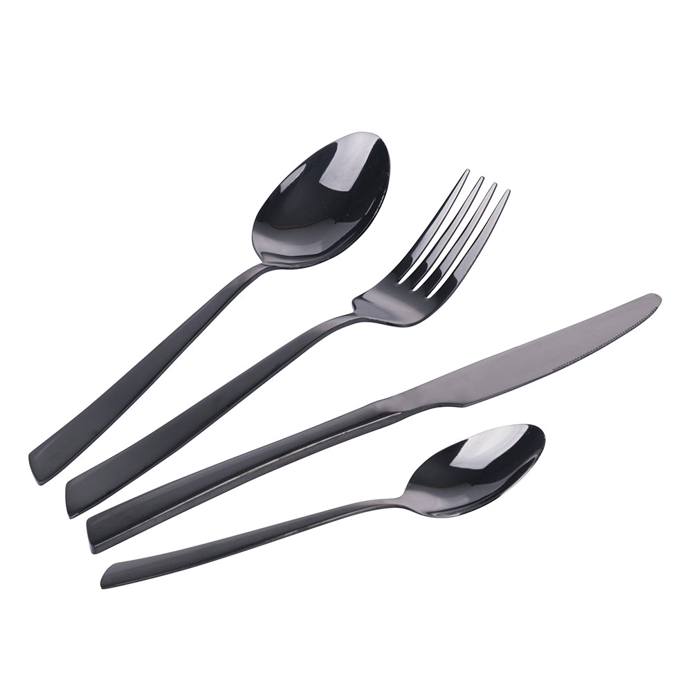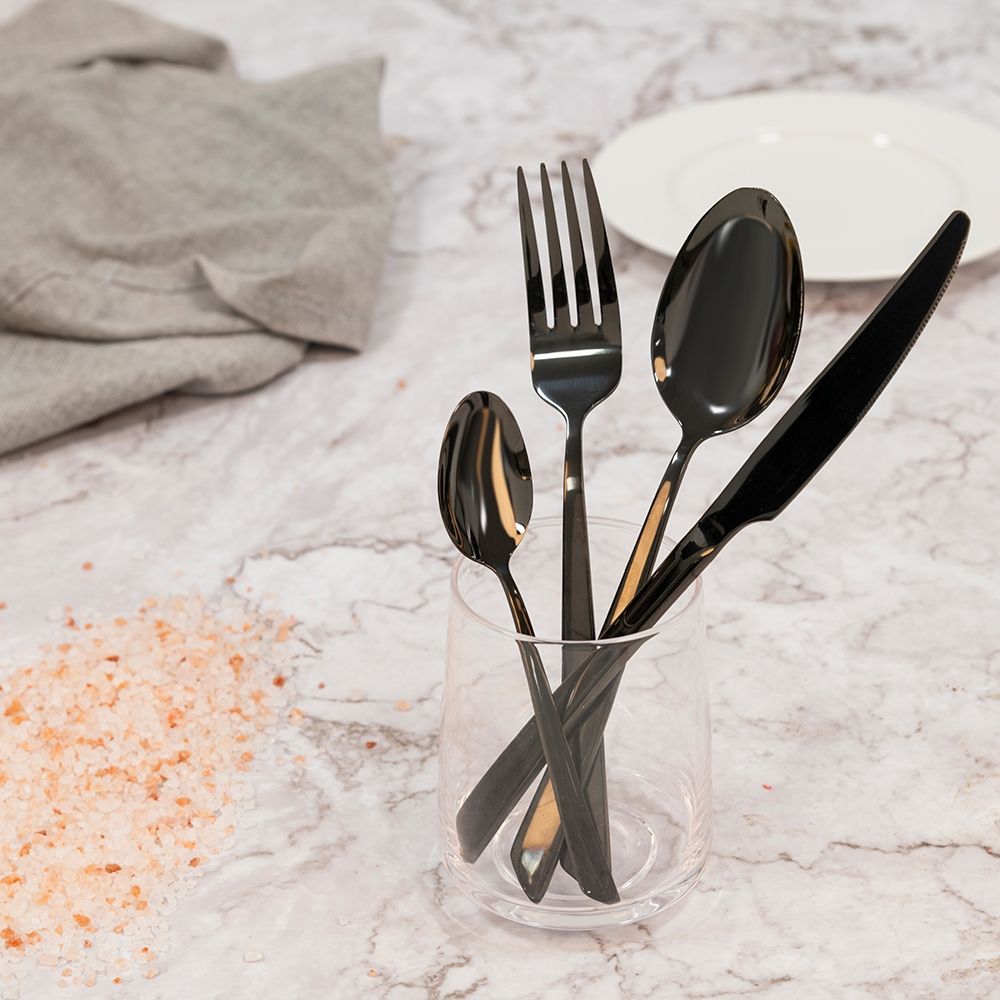 - Il set si compone di 6 coltelli, 6 forchette, 6 cucchiai, 6 cucchiaini