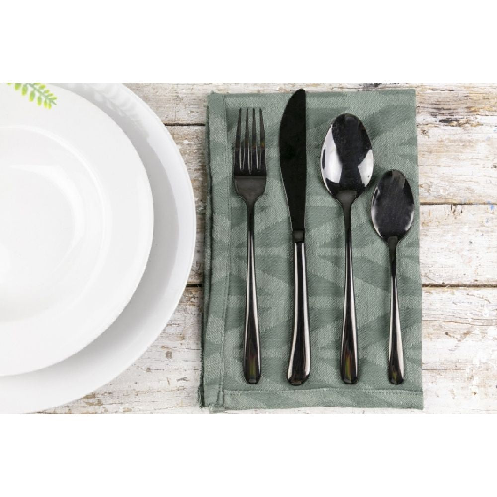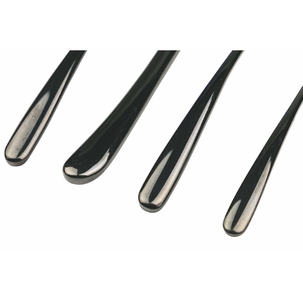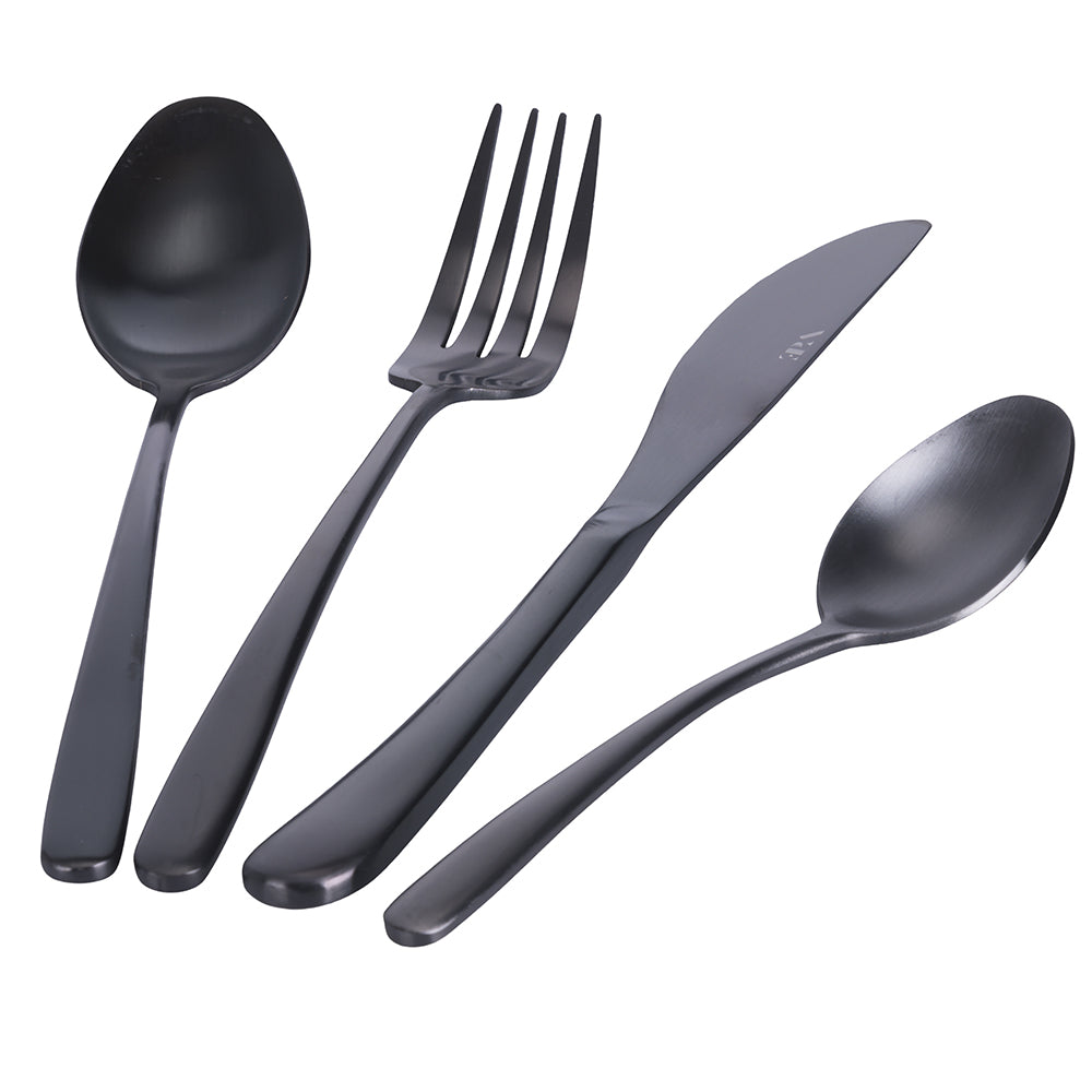 24-teiliges Besteckset aus schwarzem Stahl mit glänzender Oberfläche.