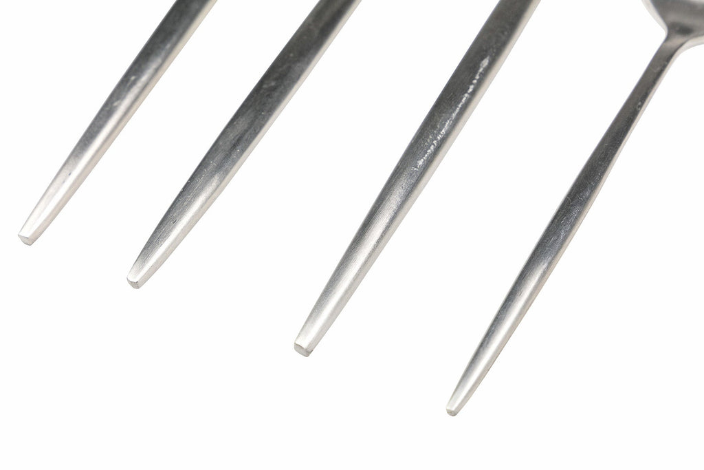 Bereichern Sie Ihren Tisch mit Charme und Eleganz. Verzichten Sie auf das traditionelle Mise en Place und verblüffen Sie die Gäste mit glamourösen Effekten und der Schönheit des minimalistischen Stils.Die Bestecklinie Preciosa aus gebürstetem Stahl ist Ihre ideale Lösung, um den Tisch im großen Stil zu decken.