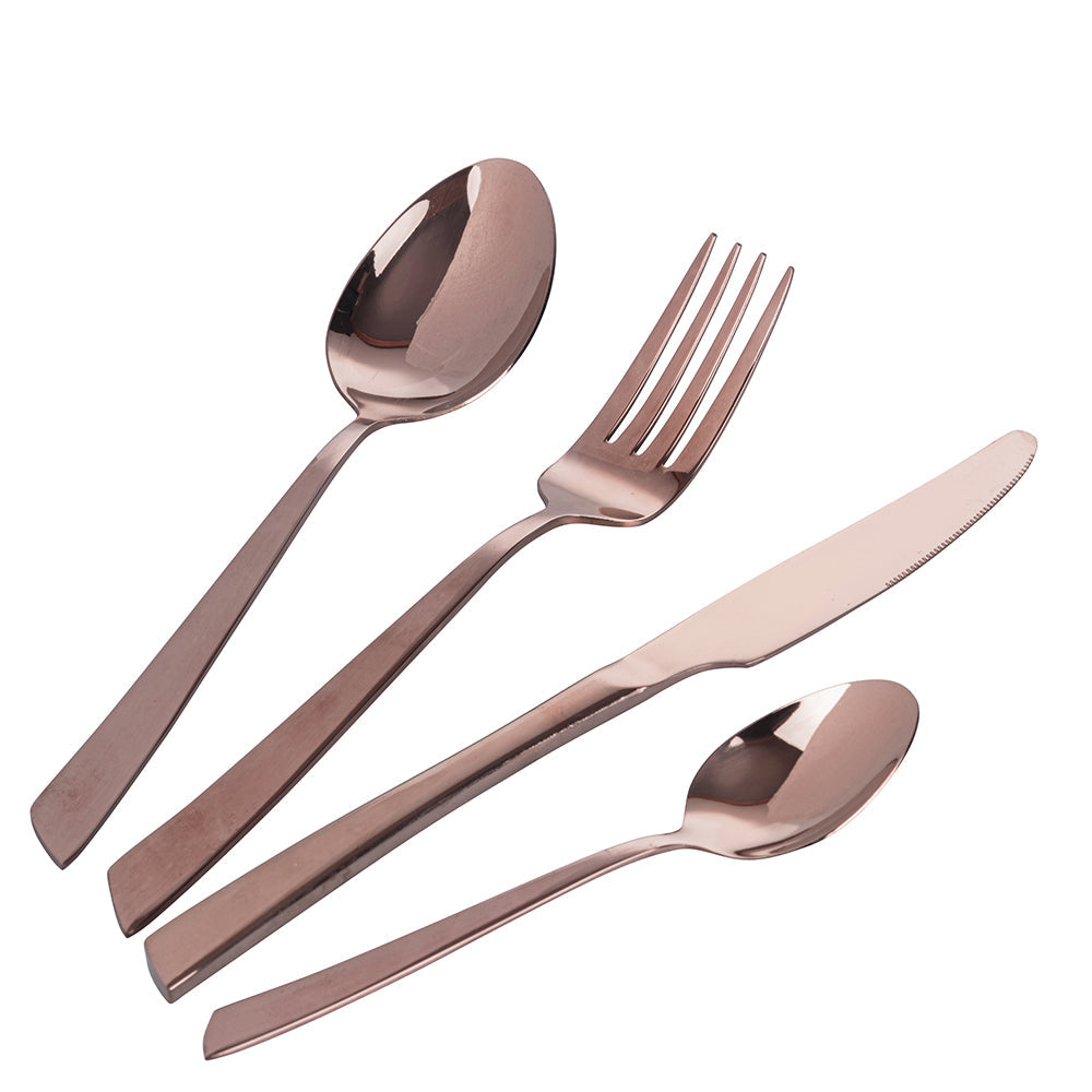 - Il set si compone di 6 coltelli, 6 forchette, 6 cucchiai, 6 cucchiaini