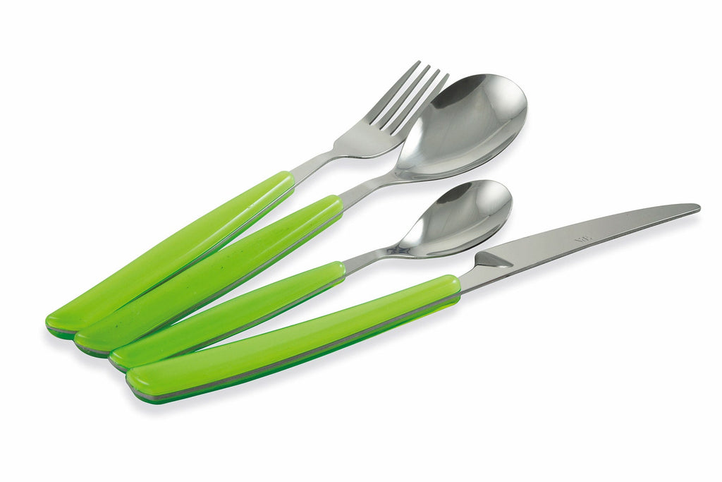 - Das Set besteht aus 6 Teelöffeln, 6 Löffeln, 6 Gabeln, 6 Messern.