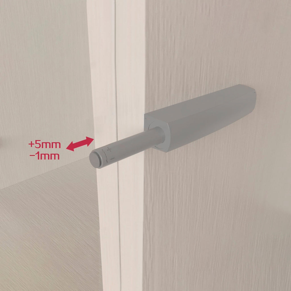 La sua installazione è molto semplice, si avvita al mobile con un supporto di 80 mm di lunghezza e le viti sono incluse. Inoltre, ruotando la testina può essere regolata da -1 a +5 mm per adattarsi perfettamente alla porta.