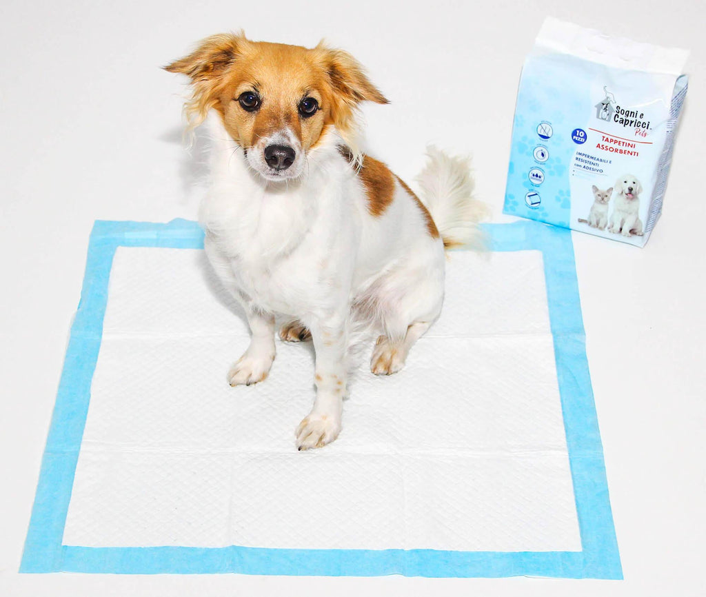 Saugmatte für Haustiere, ausgestattet mit 4 Klebeetiketten an den Seiten, um den Artikel am Boden zu befestigen. Perfekt für das Training von Welpen, die Unterstützung älterer Hunde oder als alternativer Außenbereich für Indoor-Hunde.