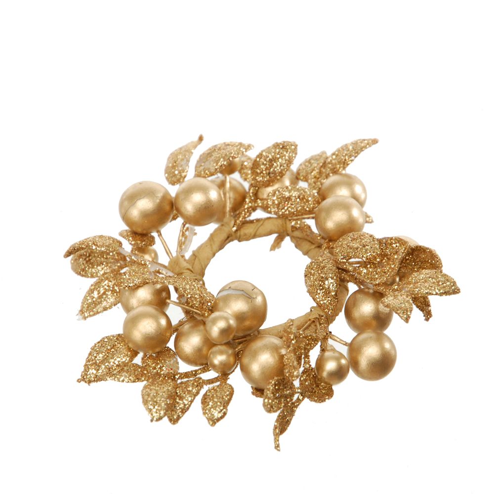 - Corona dorata ornata di bacche, realizzata con prodotti di alta qualità.