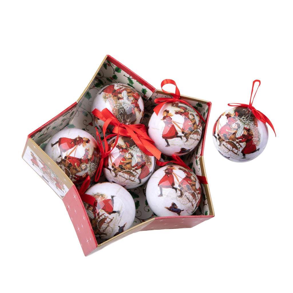 Set mit 12 Dekokugeln für Weihnachtsbaum mit Kindern H7,5 cm Weiß/Rot