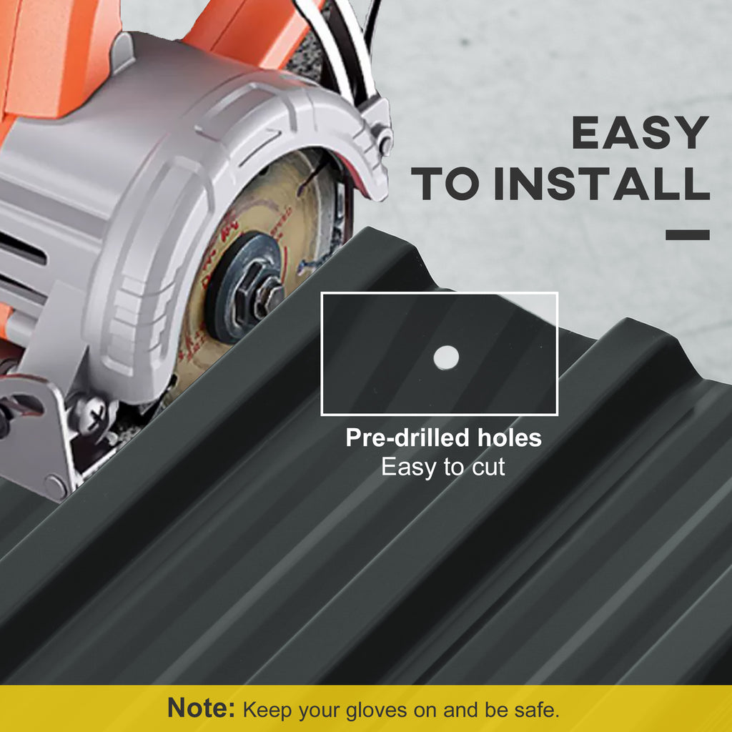 - FACILI DA MONTARE: Sono presenti dei buchi preforati per consentirti un'installazione facile e pratica. È sufficiente stendere le lastre in acciaio sull'area desiderata e fissarle con le viti appropriate per completare il montaggio