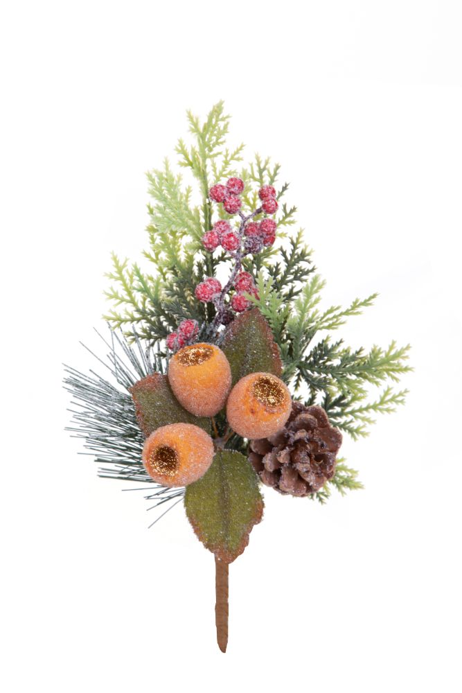 Set 12 Rami Artificiali Pino con Frutti 30 cm in Sintetico
