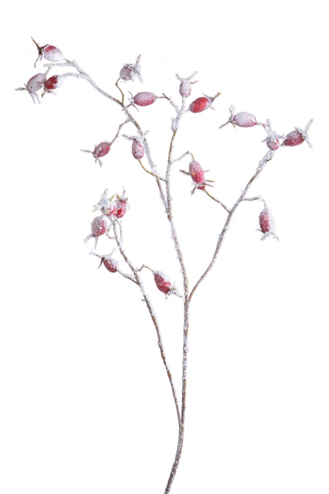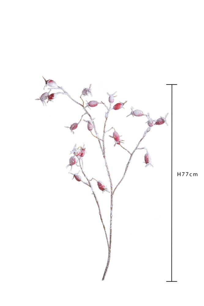 Set 12 Rami Artificiali Rosa Canina Innevata 77 cm in Sintetico