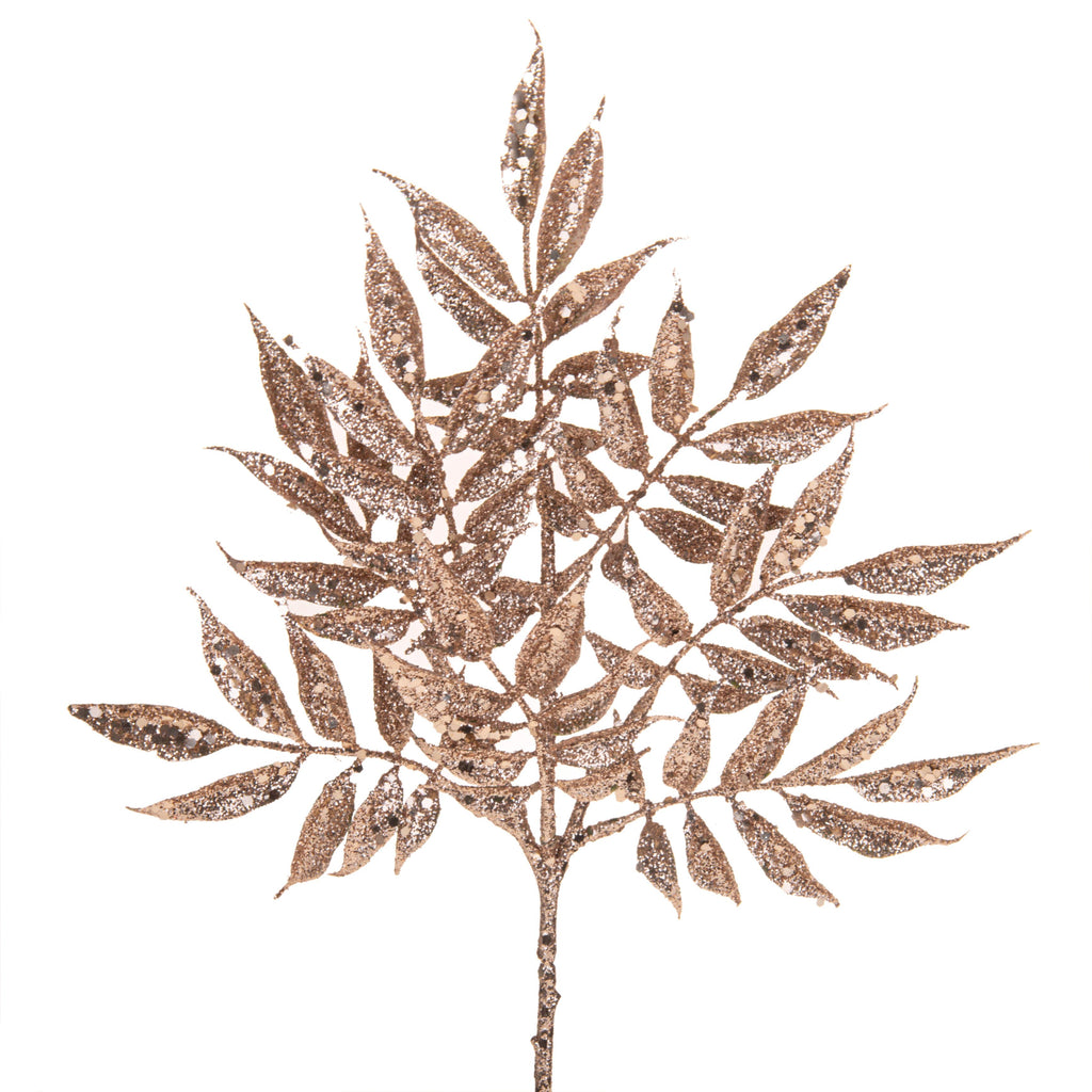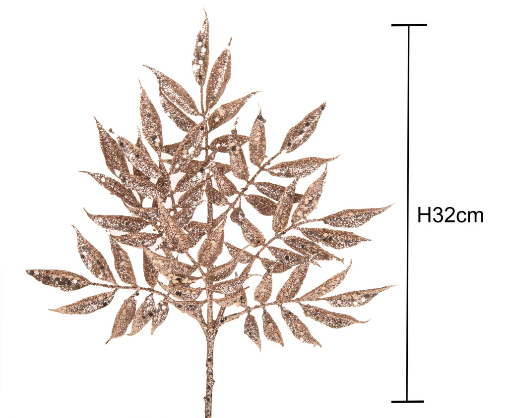 Set 12 Ruscus-Zweige mit Glitter H32 cm Champagner
