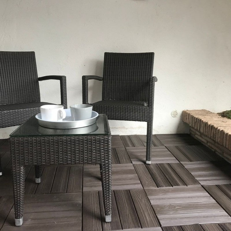 Easywood è un'elegante piastrella in plastica per esterni. La soluzione più veloce e versatile per creare pavimentazioni dal ricercato gusto estetico con finitura effetto legno. Leggera e semplice da montare e smontare, può essere applicata per creare piacevoli aree calpestabili come verande, terrazze, solarium, aree relax, bordi piscina ma anche pavimenti per manifestazioni musicali e fieristiche. Disponibile nel formato 18,6 x 37,7 cm e nei colori antracite, caffè, grigio e cappuccino può essere assemblata in numerose combinazioni di posa.